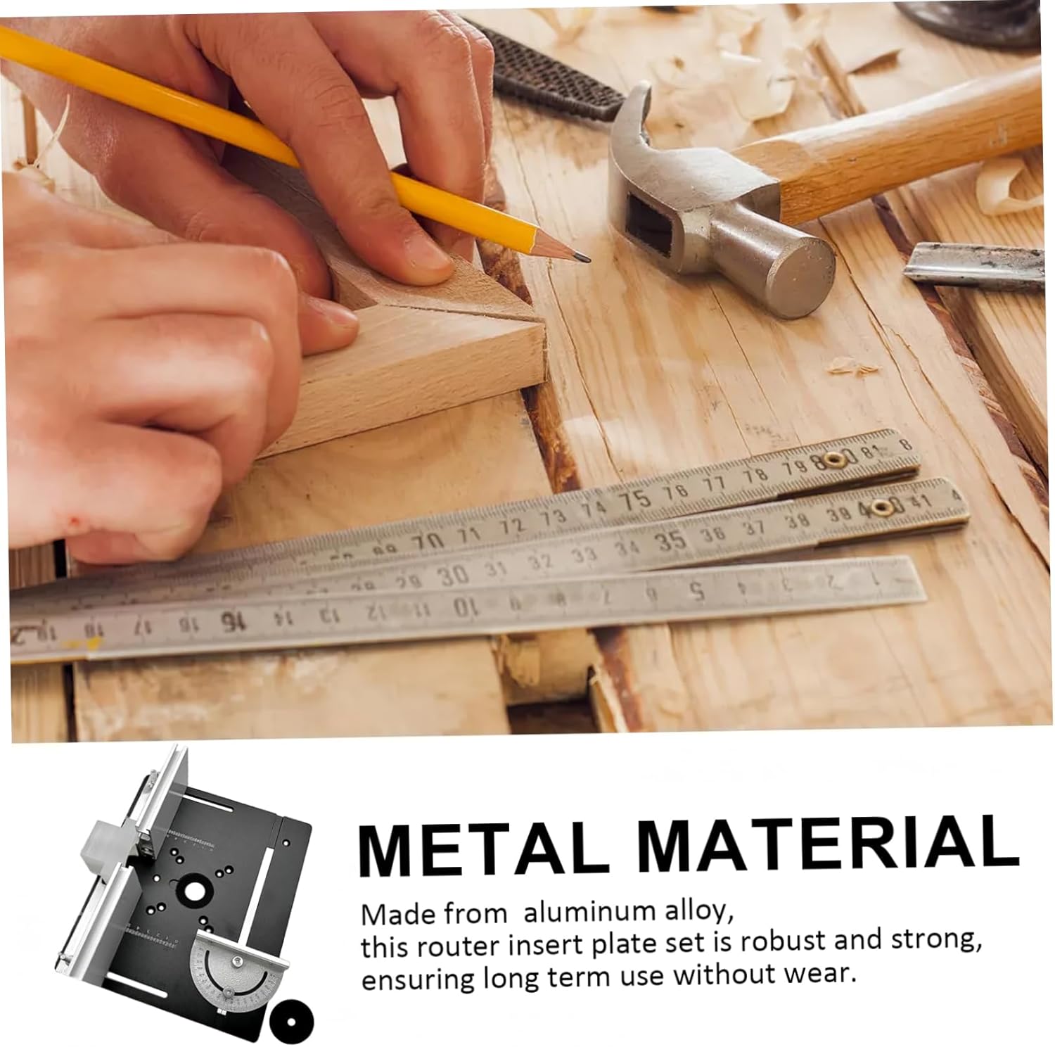 Package List 1 x Router Table Insert Plate 1 x Back Plate 1 x 180 Angle Gauge 1 x Neutral Paper Box Characteristics -Multifunctional design: the router table insert plate set is versatile, providing ample workspace and support for various woodworking tasks router table plate -Color:Black router plate for woodworking benches -Easy installation: the insert plate allows for quick and easy installation without the need for extra tools, saving you effort router table insert plate kit -Metal material: made from aluminum alloy, this router insert plate set is and strong, ensuring long term use without wear router milling bracket -Size:24.00X20.00X0.40cm/9.43X7.86X0.16in router stand -Material:Aluminum alloy wood milling board -Precision machining: each router table plate is precisely machined to allow flatness and accuracy, delivering better performance in your woodworking projects wood router table insert plate -Wide application: available in a compact size, this set is suitable for different router table dimensions, offering flexibility for your specific needs trim router tableGoods Descriptionwood milling board The aluminum alloy router insert plate set is an essential tool for any woodworking enthusiast.trim router table Whether you're working on designs or cuts, this set allows accuracy and ease of use.table router This set provides a stable and precise platform for your routing tasks