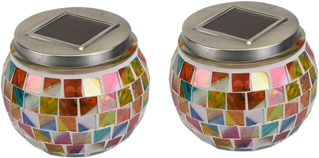Package List 2 x Solar Powered Light Characteristics - Working voltage: 1.2V can lights. - Size: 8.6 x 8.6 x 10.2cm night light. - Material: Glass, plastic and stainless steel crystal night light. - Color: Colorful LED lantern. - Rated power: 0.06W LED glass lantern. - Covered with colorful glass, creates a romantic and lovely atmosphere, fashionable and eye-protective light, decoration ornament. - You can buy it for personal usage or giving it to relatives and friends as a sweet table lamp. - Decorate you home with this light easily,it fit with your home decoration style perfectly desk lamp. - Automatic charge at the sun light enviorment solar lights. - No wiring and any installation necessary, waterproof, for garden, tables, balcony, bedroom and outdoor decoration at party or daily life Solar Jar Light Patio Decoration Solar Garden Lights Ball Lamp Solar Lawn Lamp Glass Lamp Solar Desk Lamp Solar Power Landscape Light Night Lights Solar Light.Goods Informationgarden light decor This LED glass jar light are powered by Solar energy, no extra power require.outdoor table lamp With design, better out looking, durable and elegant, perfectly fit with your decoration and illumination require.desk lamps Solar panel converts sunlight and charges the battery during the day
