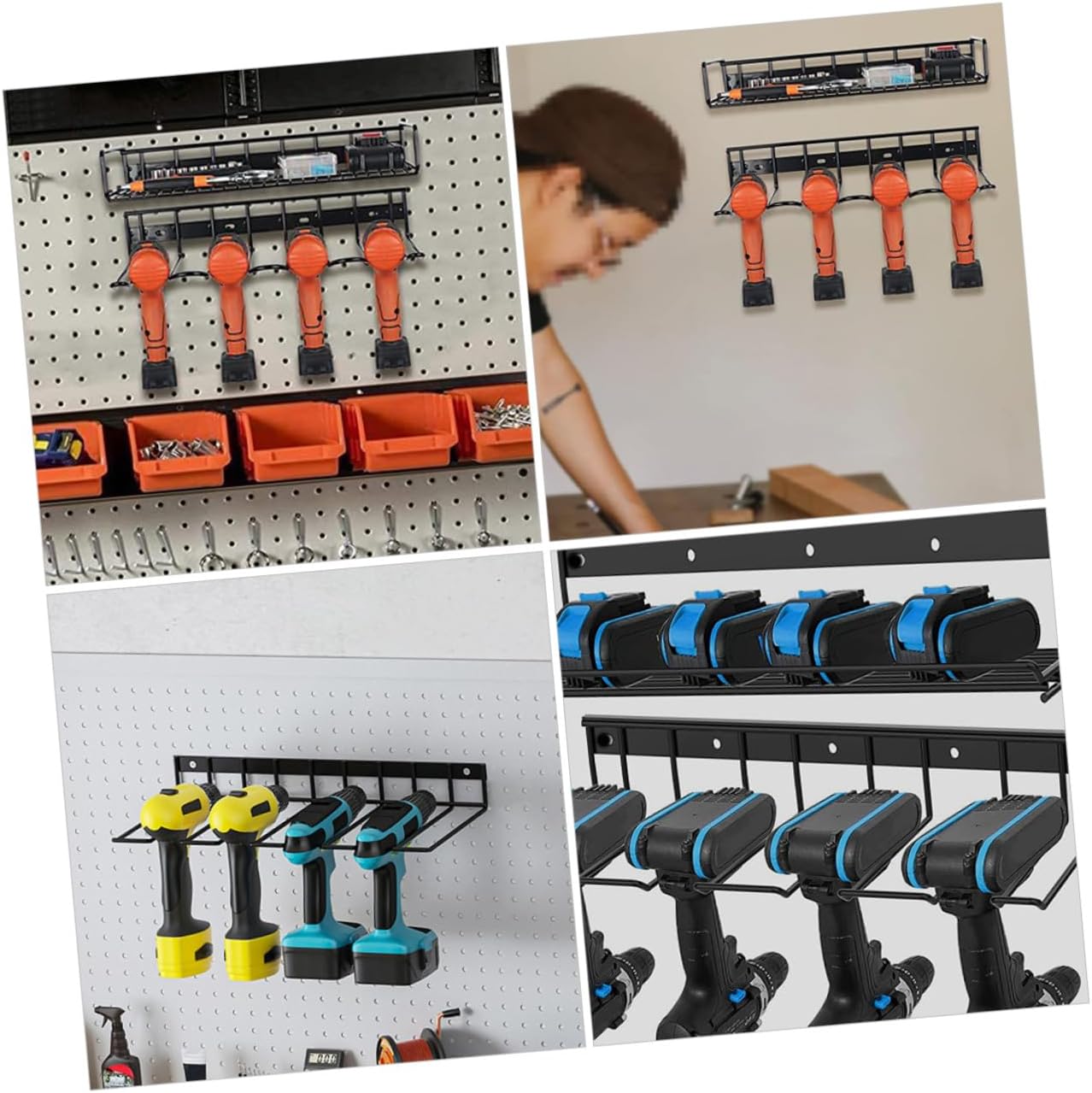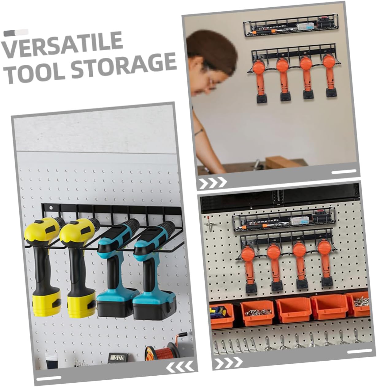 Package List 1 x set of power tool organizer Characteristics -Product Info:Tool shelf -Color:Black -Material:Iron -Size:40.00X19.50X6.00cm/15.72X7.66X2.36in - Make all the power tools in your space more well organized and neat, easy to find when needed drill organizer. - This wall mount tool holder is fit for home, garage, industry, factory and more places you need drill rack. - Made with iron material, high hardness, the drill rack is not easy to rust or damage, support long time using. - Characterized by a sturdy and reliable texture, not easy to break, serving you for a long time wall mount tool shelf organizer. - The drill holder to make your drill never of organizer, you can use rest assured Drill Tool Storage Rack.Goods Descriptionpower tool holder Easy to install, simple structure design.wall mounted tool organizer Made of reliable and sturdy material, help you take full use of indoor space, make your room more spacious and tidy.Drill Tool Storage Rack Multipurpose design, it can be used to store your power tool, hand tool, etc.electric drill rack This item is a wall-mounted storage rack