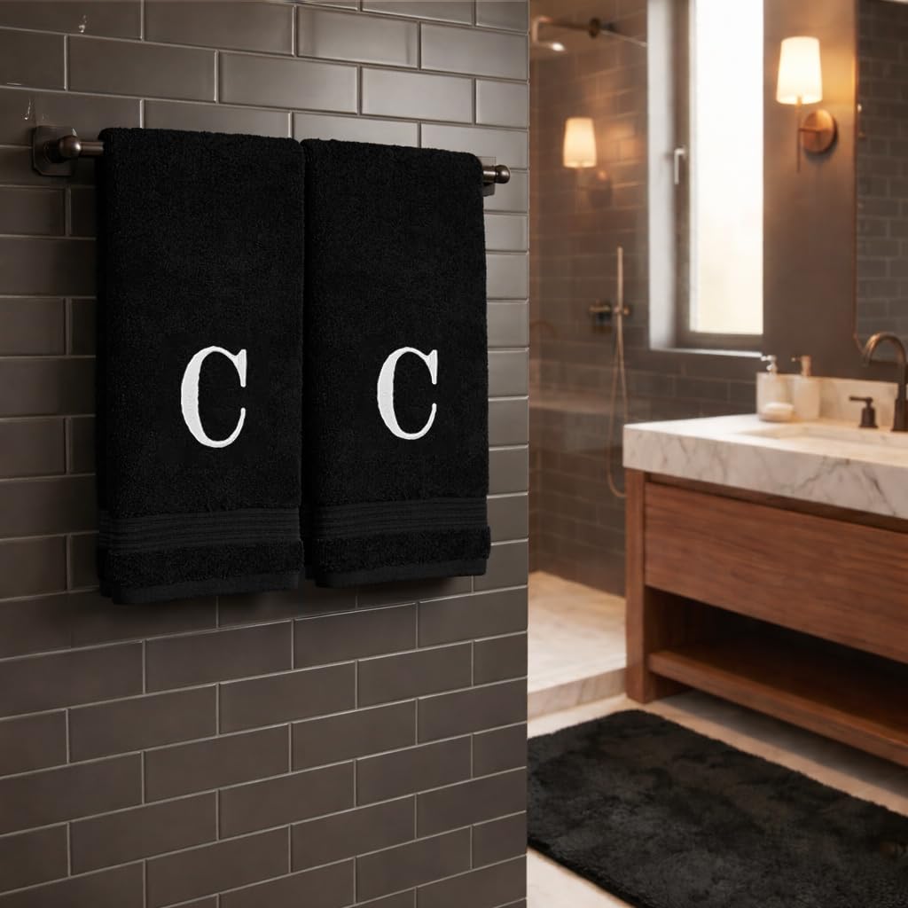 | Model Name | Black Hand Towels for Bathroom - White Monogram |