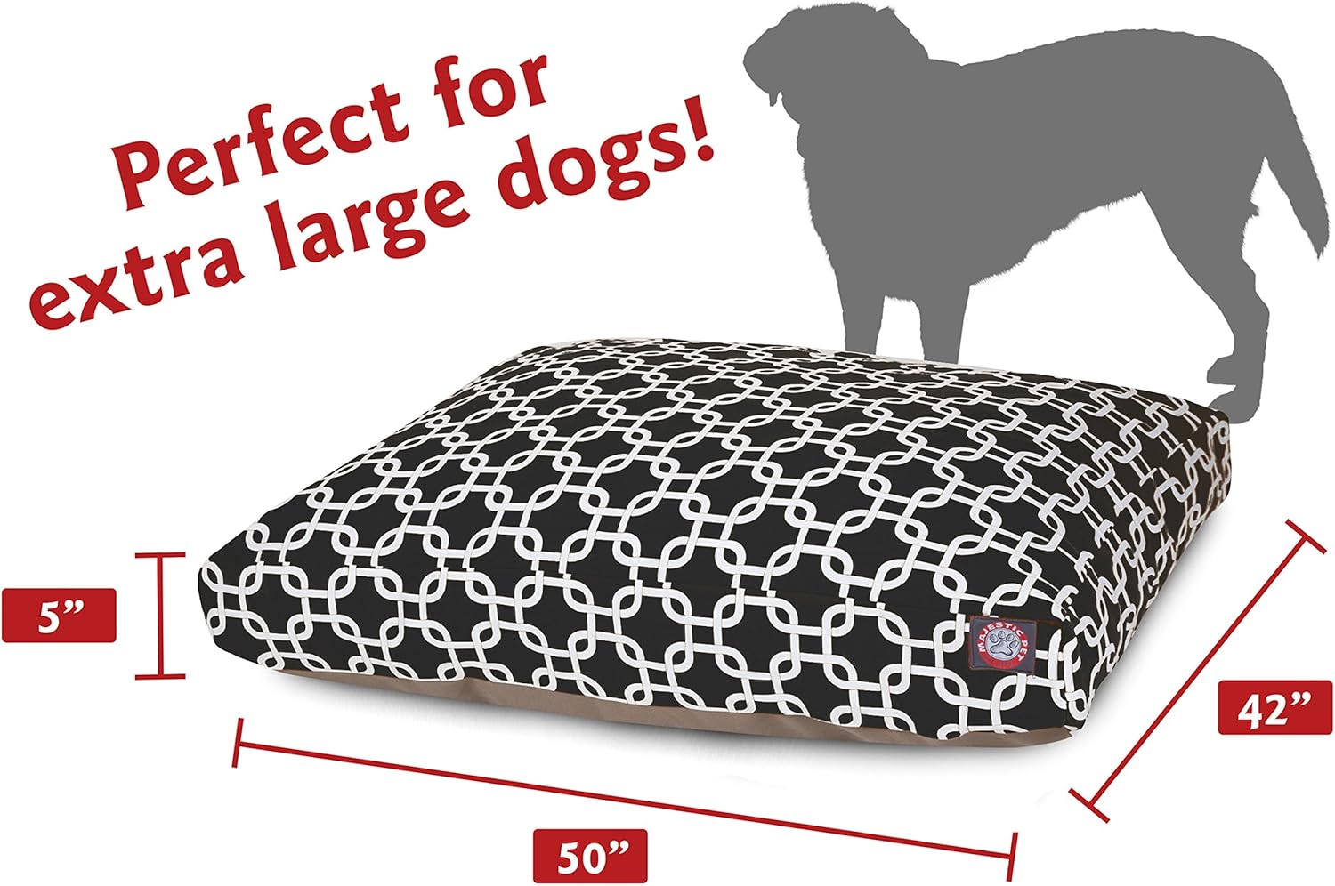 Majestic Pet Product 50" x 42" Extra Large Striped Rectangle Dog Bed Dimensions: 50"L x 42"W Cushion: 5"H Outside material: Poly / cotton twill Inside material: Premium High Loft Polyester Fiber Fil Washing Instructions: Place slipcover into washer and dryer on low heat, tumble dry low Indoors or outdoors, these high-quality dog beds are just what your dog needs to keep them rested and ready for their next adventure. The Majestic Pet Striped Extra Large Rectangle Pet Bed is filled with a generous portion of super plush fiberfill for warmth and unbeatable comfort. The removable zippered slipcovers are woven from durable Outdoor Treated polyester with up to 1000 hours of U.V. protection enabling it to withstand nature's elements. Heavy-duty zippers will stand up to years of washing and use. The machine washable slip cover can be tossed in the washer on machine wash warm, then tumble dry on low for easy cleaning. Based in Irvine, CA, Majestic Pet Products, Inc. is a leading pet products manufacturer. Majestic’s roots date back to 1994 when they started producing dog collars and leashes and has since expanded their product line to include a variety of pet beds, cat trees, crates, gates and more. The Majestic team includes some of the most talented product developers, graphic designers, customer satisfaction aficionados and marketing pros, all lead by a top notch management team. Majestic’s continuous development of modern and innovative products has garnered them a reputation of quality and excellence within the industry. Our mission at Majestic Pet is simple, it is to create quality products, that offer great value and provide exceptional customer service, all while sharing in our success to support worthy causes. Our promise to you is to continuously offer the finest products and customer service in order to keep you and most importantly, your pets happy. You can find Majestic Products sold nationwide through leading online and brick and mortar retailers.