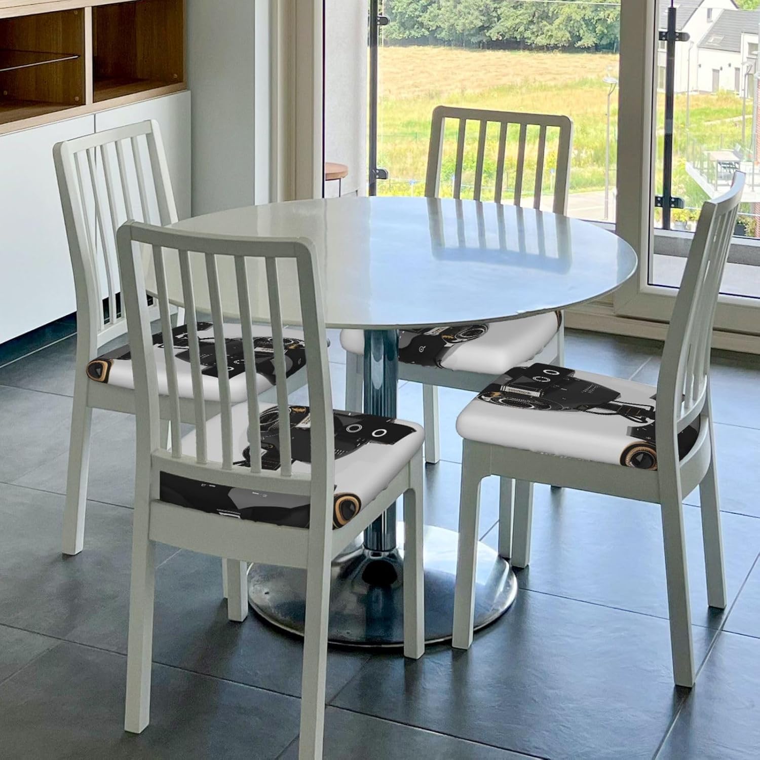 Our 6 Pcs set of square chair cushion covers are a wonderful addition to any seating area. Made of milk silk (94% polyester and 6% spandex), they offer a great combination of elasticity and comfort. With the unique design of elastic bands and 4 tie - straps (approx. 40cm each), these covers can be quickly installed on square chairs with sizes ranging from length and width of 35 - 48cm and thickness of 2.5 - 6cm. They are perfect for protecting your chairs from kids' doodles and pets' damage while enhancing the overall look of old chairs. These cushion covers can be used in various places such as offices, homes, cars, and wheelchairs, as well as for events like hotel functions, weddings, dinners, conferences, and family celebrations. What's more, they are easy to clean either by hand or gentle machine wash, ensuring they stay fresh all year round. They are also an ideal gift for your loved and colleagues.