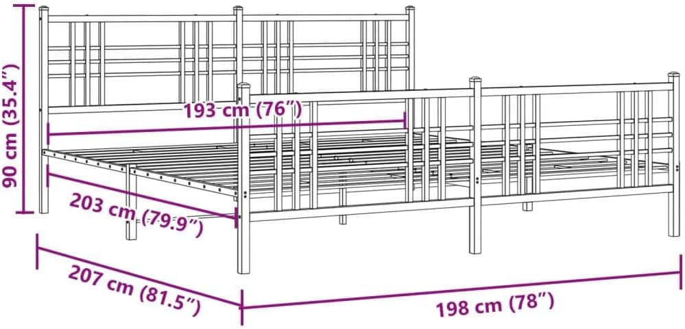 This Metal Full Bed Frame mixes style and practicality, perfect for master bedrooms and guest spots. Built with a strong steel frame, it combines comfort and looks, giving you a timeless charm that fits loads of decor styles and provides solid support for good sleep.Durable Construction: The bed frame is made from top-quality steel, ensuring long-lasting strength that handles daily wear without losing stability. Its sturdy design gives the support needed for both mattress and those who use it.Ample Storage: With generous space underneath, this bed is great for keeping your bedroom tidy, perfect for stashing away shoes, boxes, or seasonal wear.Traditional Style: The classic design details add elegance to any room, mixing timeless elements with a modern finish, making it a versatile addition to your space.Heavy Weight Endurance: With a weight limit of 551 lbs, this metal bed frame is built to last, safe for all shapes and sizes. Rest easy knowing you and your partner can sit and sleep comfortably.Easy Assembly: This frame comes with simple assembly instructions and everything you need, so setting it up is a breeze.Color: Black Shape: RectangularMaterial: Metal SteelFinish: Painted Indoor/Outdoor: Indoor OnlyCover Included: NoRoom: BedroomCapacity: Full bedMaximum Number of People: 2Maximum Weit: 551 lbsDimensions: 78 x 81.5 x 35.4 in (W x L x H)Leg Height: 11.8 inWeight: 63.27 lbsSwings: NoDelivery Contains: Bed frameAssembly Required: YesRecommended Number of People for Assembly: 2