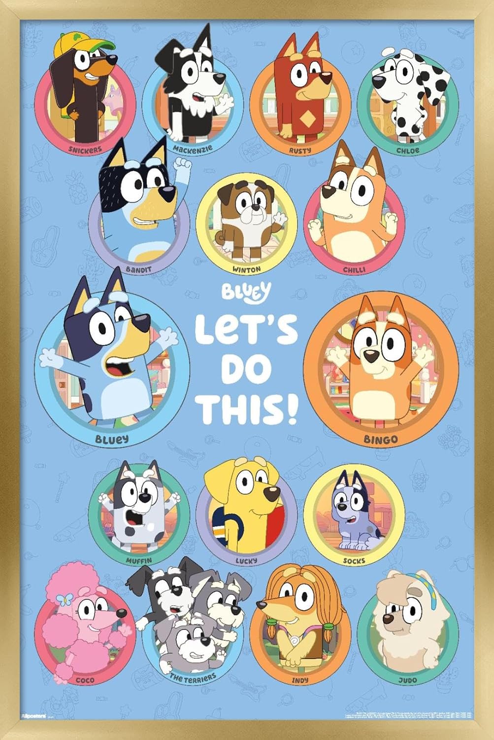 Allposters framed posters are everyone's favorite room decor! The clean, modern design and premium satin finish of this Bluey - Grid Wall Poster will make a bold wall decor statement in any room. Decorate the bedroom, bathroom, kid's room, living room, office, dorm, and more! Our framed posters are lightweight and easy to hang using the sawtooth hanger so you'll be able to enjoy it in no time. Every one of our framed posters are proudly Made in the USA. Add these decorations alongside the other accessories on your party supplies list too! Allposters's wall posters are the perfect way to dress up your parties. A framed poster makes a great gift as well! Whether it's for a birthday, Christmas, house warming or for your best friend, they'll love receiving a framed poster to show off their style.
