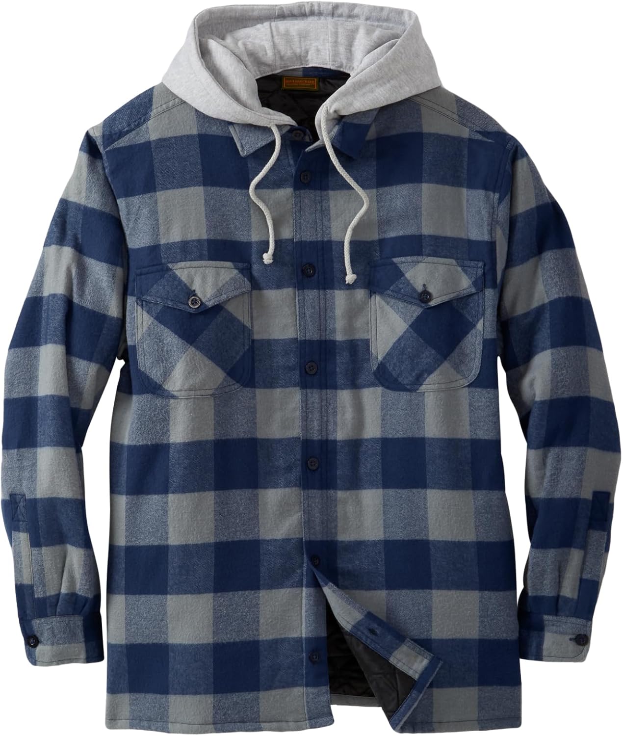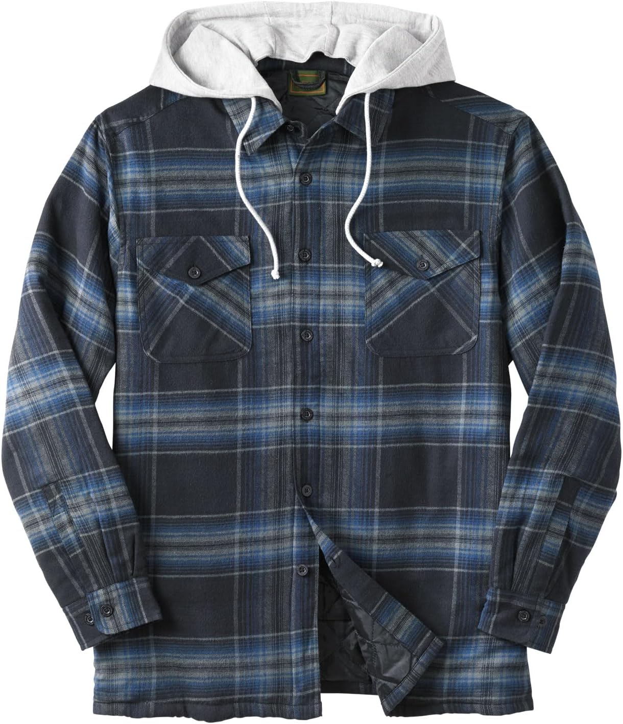 Easily transition into fall with this fleece shirt jacket that keeps the chill out without any bulk. Choose from brushed flannel or rugged denim. The removable drawstring fleece hood adds an extra layer of protection. Button down frontbr>Removable fleece hood with an adjustable drawstringbr>Flap chest pockets and side seam pocketsbr>Big length abt. 34"; Tall length abt. 36"br>Cotton/polyester; in rugged denim or brushed flannelbr>Machine washbr>Imported Love this jacket? Pair it with our Waffle-Knit Shirts.