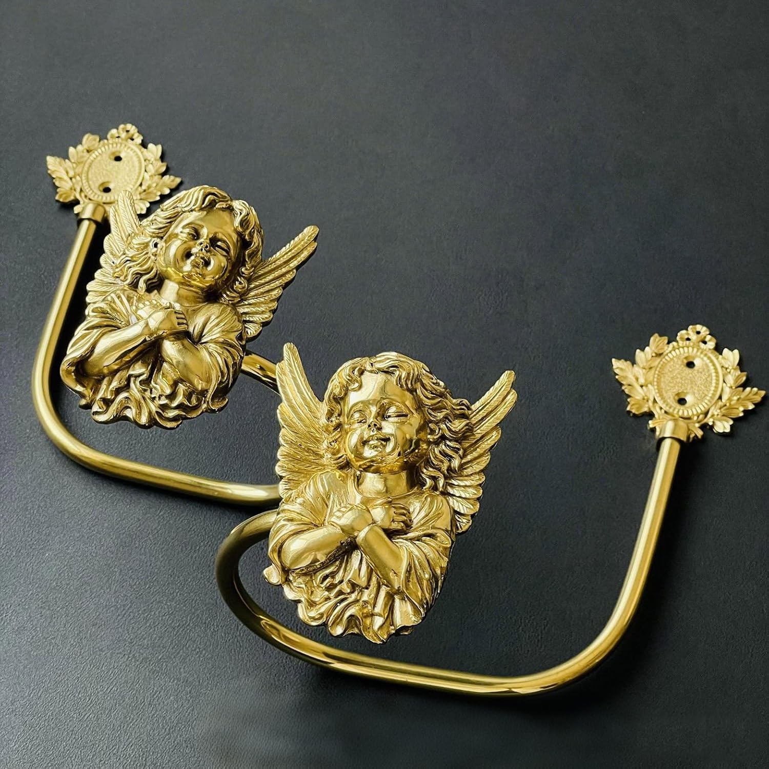 CatchDragon Brass Angel Curtain Tiebacks Set of 2 – Gold Metal Cherub Decorative Curtain Holders Wall Mounted, Vintage Luxury Drapery Holdbacks for Living Room & Bedroom Specifications: Material: Solid brass Color: Gold Mounting Type: Wall mounted Set Includes: 2 curtain holders Application: Curtains, drapes, window panels Features: Enhance your home décor with timeless elegance using these brass angel curtain tiebacks. Each piece features a finely detailed cherub angel design, symbolizing beauty and romance while adding artistic charm to your windows. Made from high-quality solid brass, these curtain holders provide superior durability and stability. The smooth gold finish resists rust and fading, ensuring lasting elegance for years to come. Designed for wall mounting, they securely hold curtains open to allow natural light while serving as a luxurious decorative accent. Ideal for both traditional and upscale modern interiors.