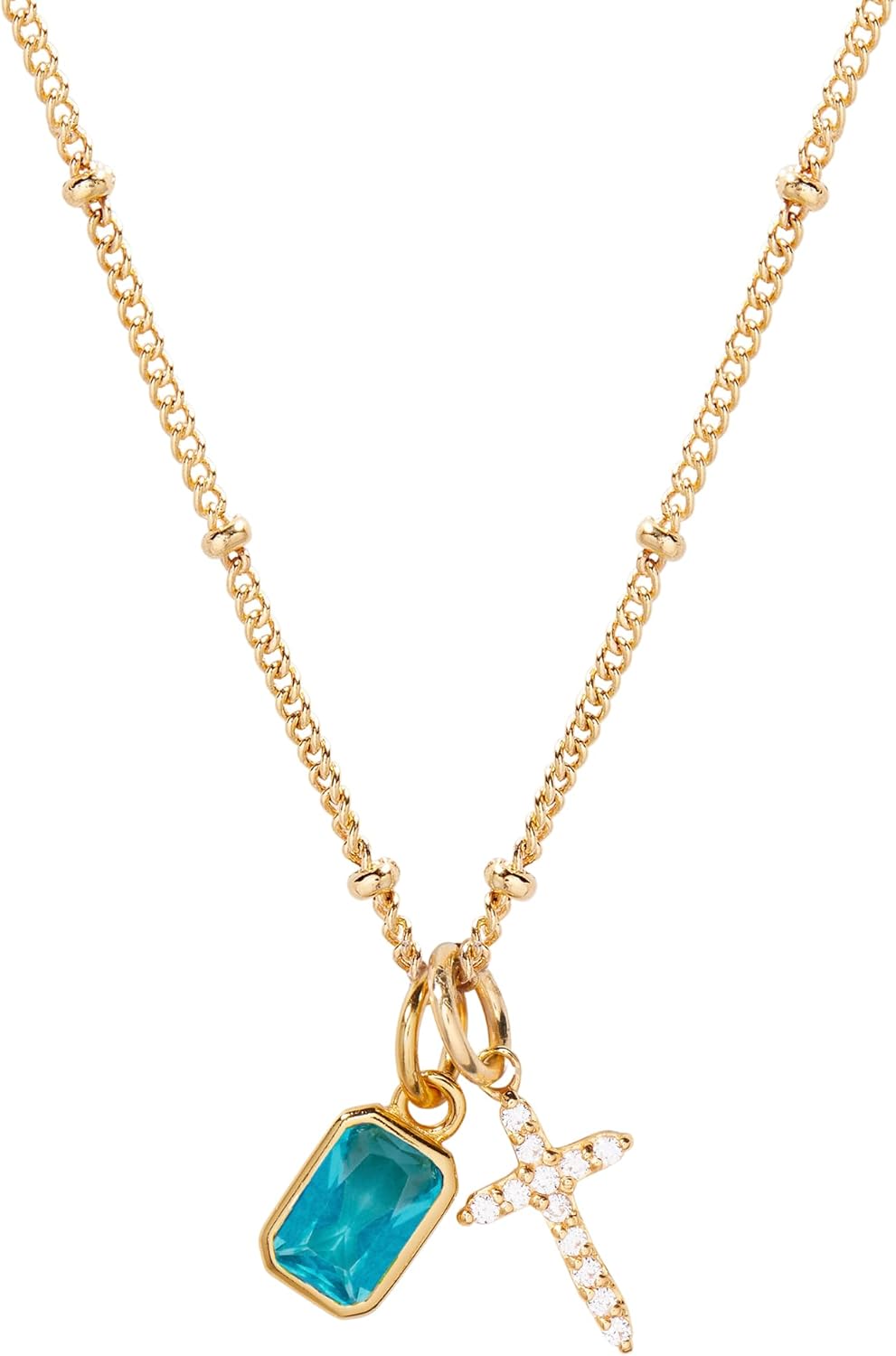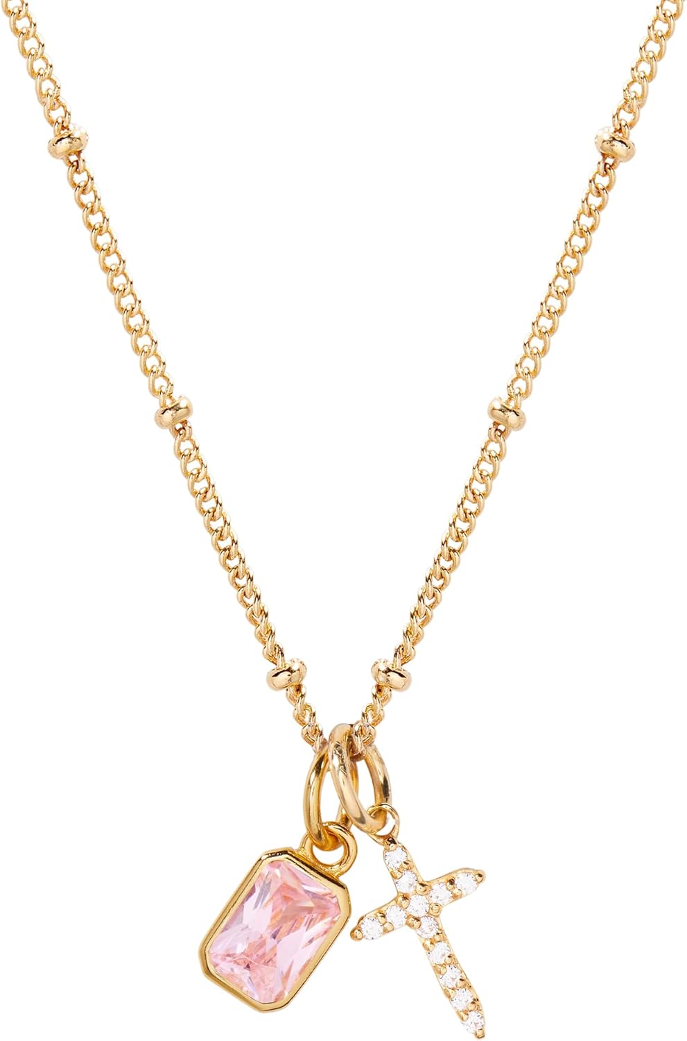 Add a touch of personalization to your jewelry collection with the Josephine Cross Birthstone Necklace. Featuring a delicate gold chain and a stunning cross charm, this necklace also includes a birthstone charm of your choice. Show off your unique style with this must-have accessory! Josephine Cross Necklace: Available in 14k gold vermeil, Charm size: 1/4"x1/2", 1mm white CZ, Length: 16" brass satellite chain with 2" extender Mackenzie Birthstone Charm: 1/8"x1/4" charm, 5mm Cubic Zirconia Lobster claw closure NOTE - Birthstone color may slightly vary per the color chart. NOTE - birthstone charms DO NOT slide on and off the chain. If you are looking to add or remove the birthstone charm from an existing chain, the jump ring will need to be opened. We recommend using small pliers to open and close the jump ring. SKU: BYN1504