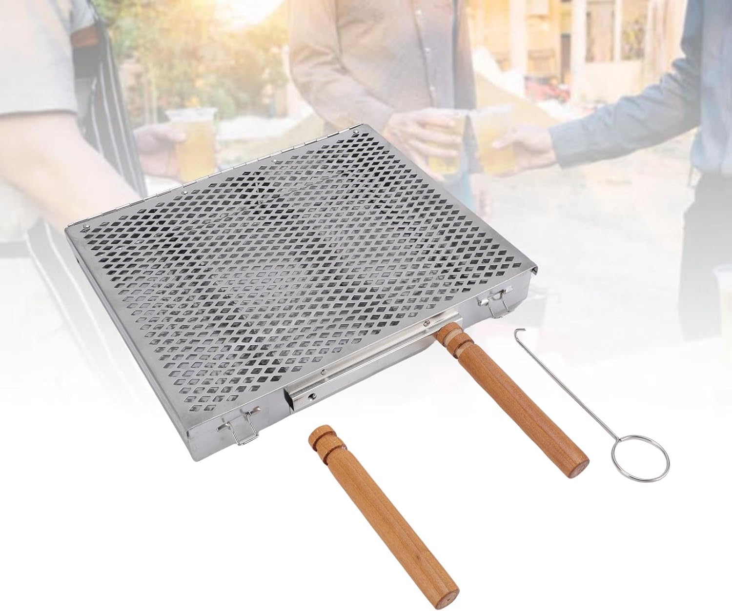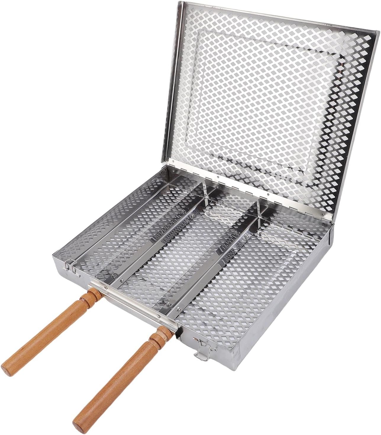 Item Type: Grill BasketMaterial: Stainless Steel, WoodProduct Size: Approx. 30.5x4x25.5cm/12.0x1.6x10.0inPackage List:1 x Grill Basket2 x Divider1 x Wooden Handle4 x Screw1 x Hookor1 x Grill Basket2 x Divider2 x Wooden Handle4 x Screw1 x Hook