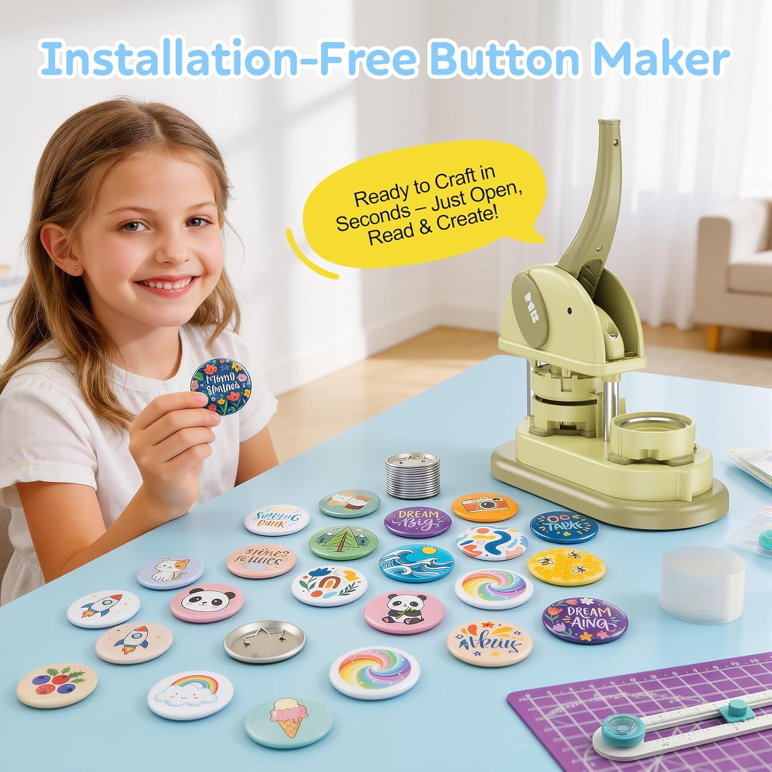 Button Maker Machine 58mm, Installation-Free 58mm(2.25in) DIY Pin Badge Button Maker Press Machine Badge Punch Press with Free 100pcs Button Parts&Circle Cutter