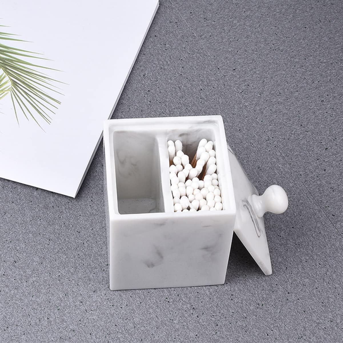 Package Include 2 x Swabs Box Characteristics - Color: White Makeup Cotton Box. - Size: Approx. 7.9 x 7.9 x 11.2cm Doble Grids Swab Organizer. - Material: Resin cotton swab canister. - Excellent materials and workmanship. Modern marble design is functional yet decorative vanity organizer tray. - Space saving design provides plenty of room for storing a multitude of small essentials resin canister jar. - With a lid, this storage container can keep the candies, snacks, , swab clean and dry resin bathroom canister. - With covers attached, your items and keep them makeup bathroom jar. - Smooth is safe for your finger and convenient for cleaning cotton bud canister.Goods InformationCotton Pads Holder This is a resin marble pattern storage box with cover design for cotton swabs and makeup cotton.resin cotton swab holder Put your toothpicks, cotton swabs, or other small items in it, and keep your table clean and tidy.vanity organizer tray You can easily find out what you need