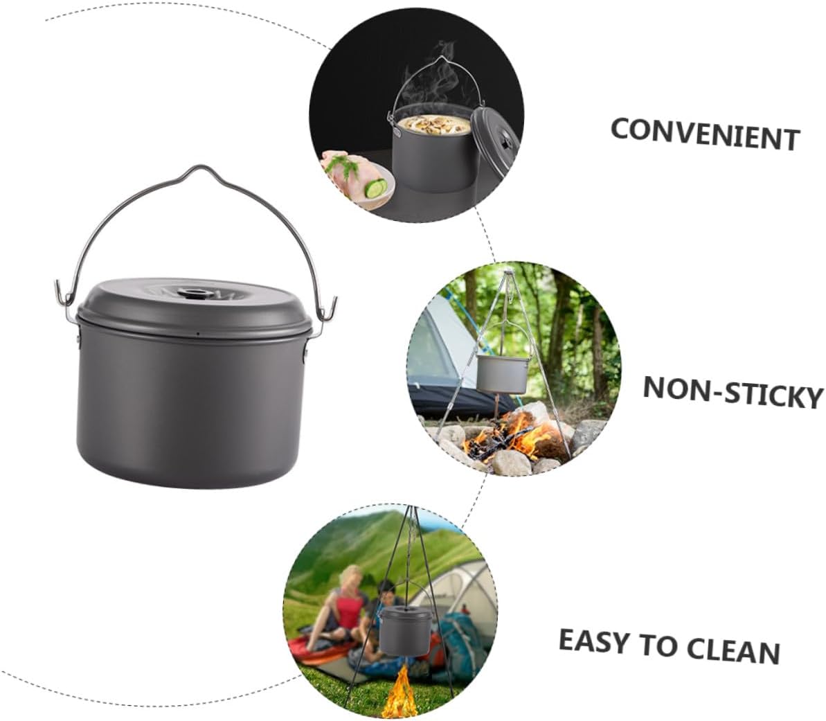 Package List 1 x Pot Features - Material: Alumina Cooking Pot. - Capacity: 4L outdoor cooking equipment. - Size: Approx. 21.00X21.00X13.50cm/8.25X8.25X5.31in small camping pot. -Product Info:Portable camping pot - Color: Assorted Color backpacking utensils. - This camping pot is designed for 4-6 people, suitable for camping, hiking, backpacking, picnics, etc outdoor gear. - The groove design of the handle is more conducive to maintaining balance when cooking is hanging camp cookware. - hard aluminum oxide material, strong and durable, not easy to rust and scratch camp pots pans. - With good thermal conductivity, food can be heated faster, and delicious food can be enjoyed in a short time camping cook pot. - The pan ears are fixed with rivets, which are very firm and can be used for a long time Picnic Pot.Goods Descriptionhiking cooking gear Using hard alumina material, it has good thermal conductivity.backpacking cookware With it, you can enjoy camping cooking time with your family.camp pot Do you want to have a portable camping pot? Then, our camping pot with handle is