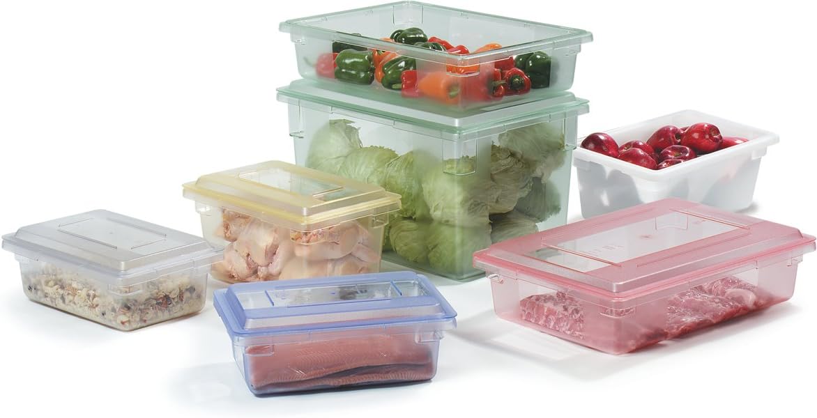 The Carlisle FoodService Products Storplus Food Storage Container is a versatile and durable solution designed to meet the storage demands of catering, buffets, and restaurant kitchens. With a generous 3.5-gallon capacity, this clear polycarbonate container is perfect for accommodating large quantities with ease. Accommodate large quantities effortlessly as the Carlisle Storplus Food Storage Container boasts a high capacity, holding up to 3.5 gallons. Streamline your kitchen operations with ample storage for ingredients, prepped foods, and more. Crafted from durable polycarbonate, this container is built to withstand staining, breaking, and chipping. Enjoy the durability that stands up to the rigors of daily use in a busy kitchen environment, providing a reliable and long-lasting storage solution. The reinforced corners of this container play a crucial role in preventing chipping and warping. This ensures that the container retains its structural integrity over time, adding an extra layer of durability to your kitchen storage setup. Transporting filled containers is a breeze with the inclusion of easy-grip handles. Safely move and maneuver the container in busy kitchen environments, allowing for efficient and convenient food handling without compromising safety. Facilitate quick and precise measurements of content amounts with capacity indicators in quart, gallon, and liter measurements. This feature streamlines kitchen operations, allowing for efficient portion control and recipe preparation. Promote food organization and simplify inventory checks with the built-in date indicator. Keep track of freshness and expiration dates effortlessly, ensuring that your kitchen operates with efficiency and maintains high food safety standards.