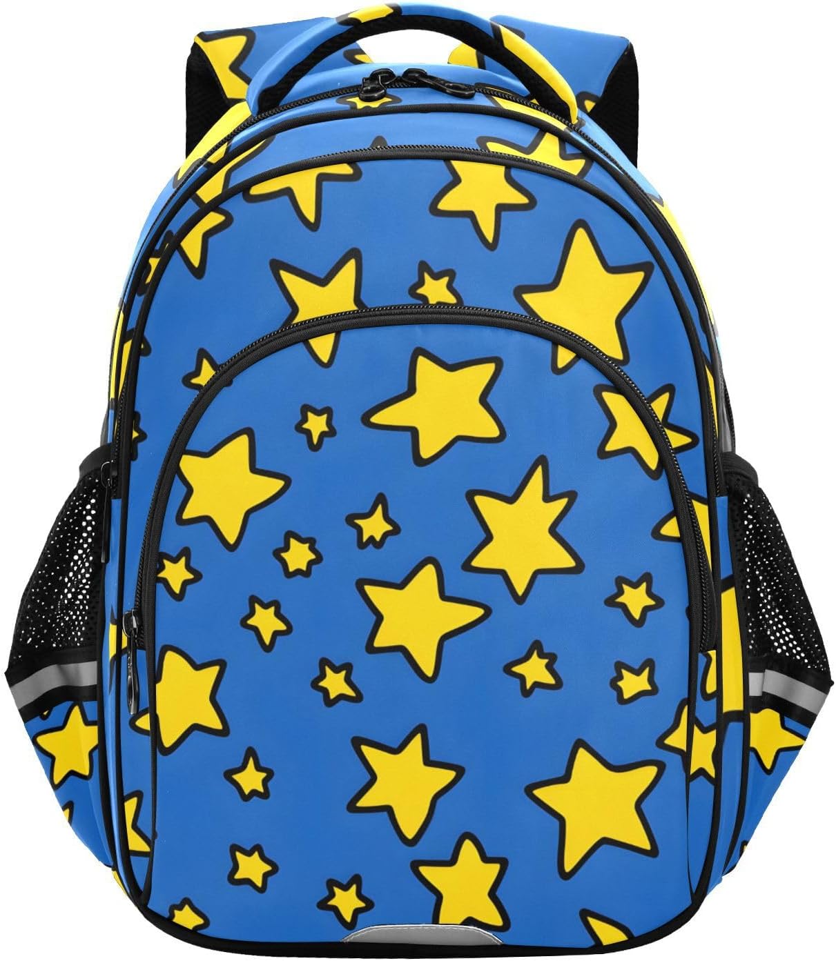 OREZI stylish student backpack reflective Stripes Kids Backpack College Laptop Travel backpack Teenage SchoolBag Girls Boys School Backpack Features 1. Dimensions:12.6"" x 5.3"" x 16.9"" (L x W x H) 2.Structure x1 main pocket with one laptop compartment ,double zipper,big open x1 middle large pocket with 2 separate compartment x1 front pockets x2 side mesh pockets Multiple pockets and compartments, spacious space to store perfect for shool daily suppliers like clothes, folders, books, lunchbox, tablet,phones,pencil case ,stationery,notebook,phone charger cable, keys, wallet, notebook, sunglasses, water bottle and an umbrella, decorations and other small items. 2. The portable Design, adjustable strap and unique handle make it easy to carry and comfortable for long-term, everyday use. The backpack weighs 1.23 LB. 3. This durable polyester fabric backpack has comfortable padded shoulder straps, padded protection for thicker laptops and tablets, and a protective pad. 4.Multi-uses:The school backpacks are great choice for outdoor activities,Kindergarten,elementary school, middle school, travel, hiking, camping for carry on or as school bookbag,school bag, daypack,laptop backpack, travel backpack.