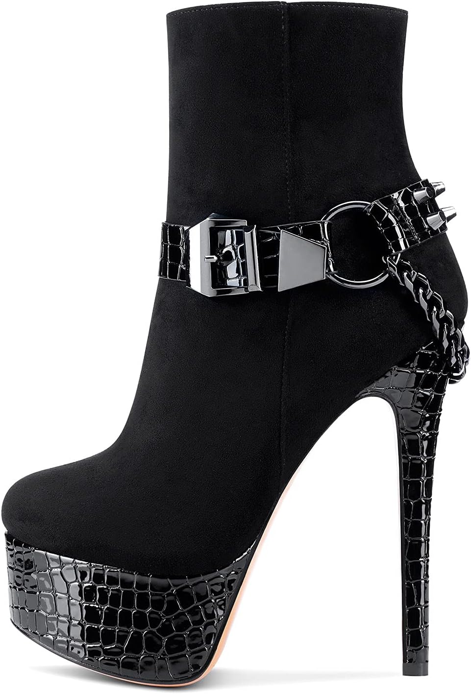 CASTAMERE Womens High Heel Platform Ankle Boot Stiletto Heels Rivet Dress Boots With Zipper Round Toe 6 Inch Heels