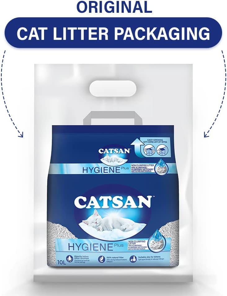 Catsan hygiene plus is a high performance non-clumping cat litter that absorbs moisture quickly and effectively before odours can develop. Cat litter granules act like a sponge as it locks liquids in, ensuring a dry and hygienic litter tray for your cat. Catsan hygiene’s extra mineral protection offers an especially reliable and long-lasting odour prevention, making this quality litter very popular with cats and cat owners alike.Catsan hygiene is made from 100 Percent natural raw materials (quartz and lime stone) giving it the hygienic white colour without any bleach. Catsan is free from all dangerous fibres and other unsuitable substances. Suitable for kittens.