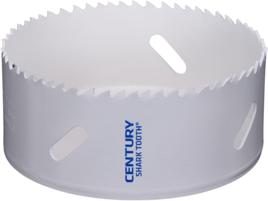5" Shark tooth Bi-Metal hole saw. Shark tooth hole saws are professional Bi-Metal saws with Cobalt high speed steel teeth, electron Welded to shatterproof, shock absorbing alloy bodies. Shark tooth's variable Pitch tooth pattern cuts clean through stainless steel, brass, aluminum, pipe steel, nail embedded wood, hardwood, plywood, sheet metal, fiberglass and plastic.