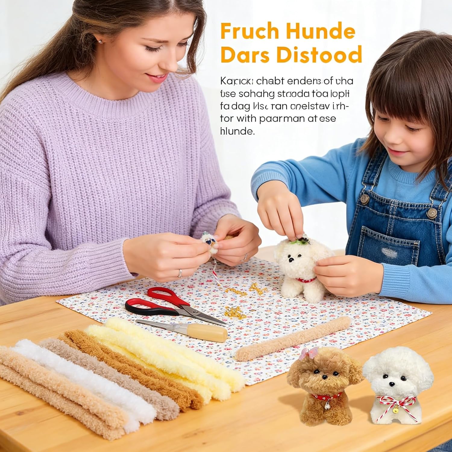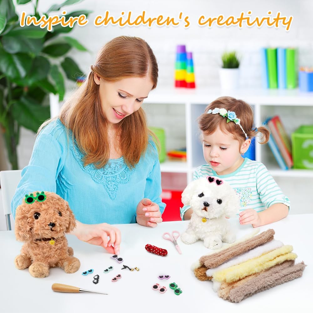 Product specifications: Product name: craft set plush toy dog | creative DIY gift for children | includes pipe cleaner, wiggly eyes & accessories Product Type: Kids Creative Craft Kit Theme: DIY dog (own cuddly toy design) Materials (included in the set): Colourful pipe cleaners (chenille wire) in various colours. Wiggle Eyes (Various Sizes) Colourful pompoms, felt scraps or craft felt. Possible: glue dots, ribbon, small accessories All materials are child-friendly, non-toxic and tested. SPECIAL FEATURES: Creativity without limits: children design their own cuddly friend individually - with floppy ears, colourful mane, fun accessories. COMPLETE KIT - READY TO GO: No additional craft materials required. Includes everything needed for the project. Encourages development in a playful way: trains fine motor skills, concentration, creativity and spatial imagination. PROUD IN THE HOMEMADE - A unique, self-designed cuddly toy as a result - much more valuable than purchased plush toys. Applications & Occasions: Perfect as a gift for school enrolment, birthday, Christmas, Easter or as a souvenir. Ideal for children's birthday parties, craft afternoons, kindergarten, primary school or as a creative activity at home. Also suitable as an educational toy for early childhood development. Package includes: All materials to make a custom craft dog Note: The finished plush toy in the product images is an example - each child creates their own unique work.