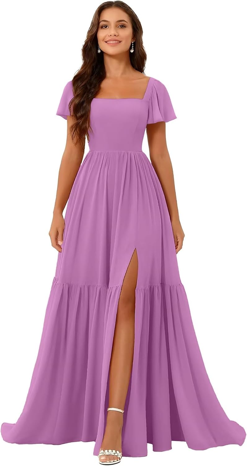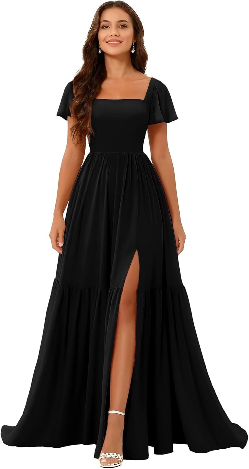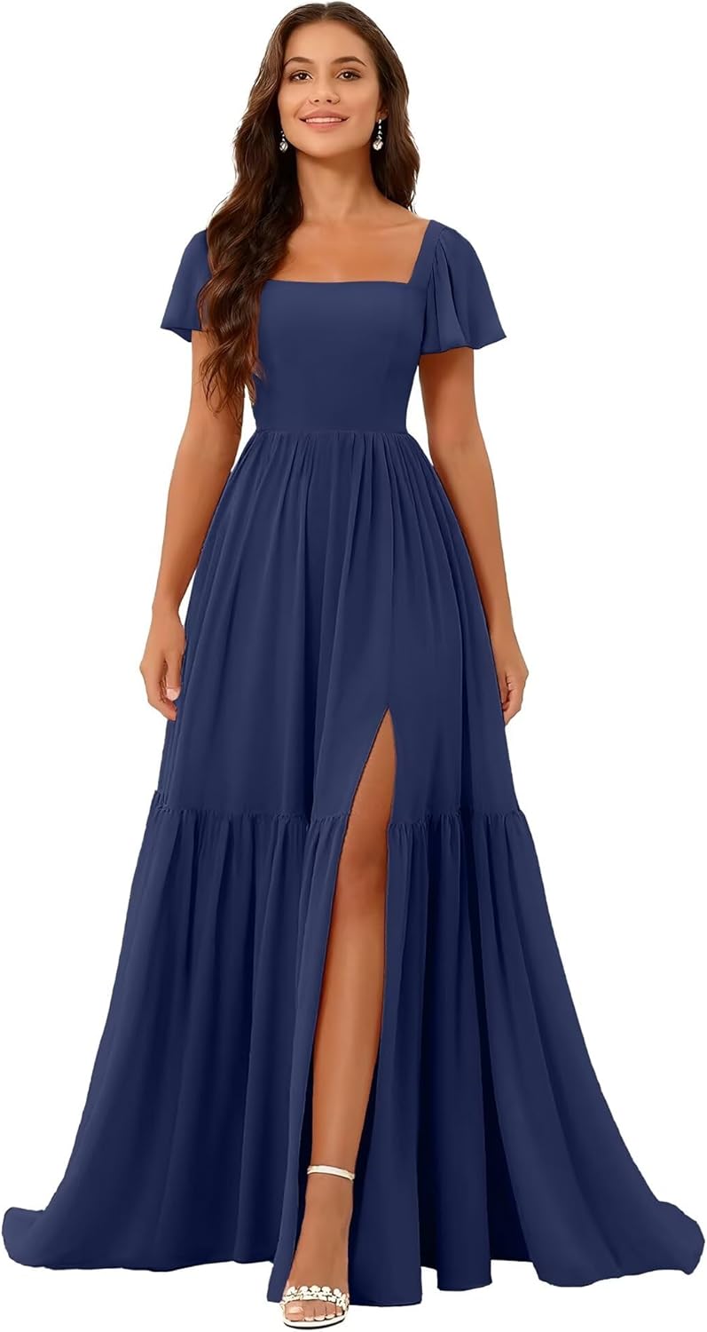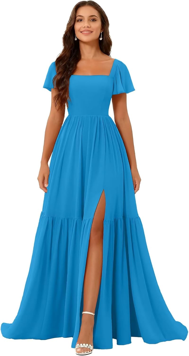 | Embellishment Feature | Ruch, Short Sleeve, Square Neckline, Thigh Slit |