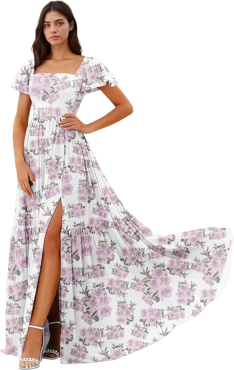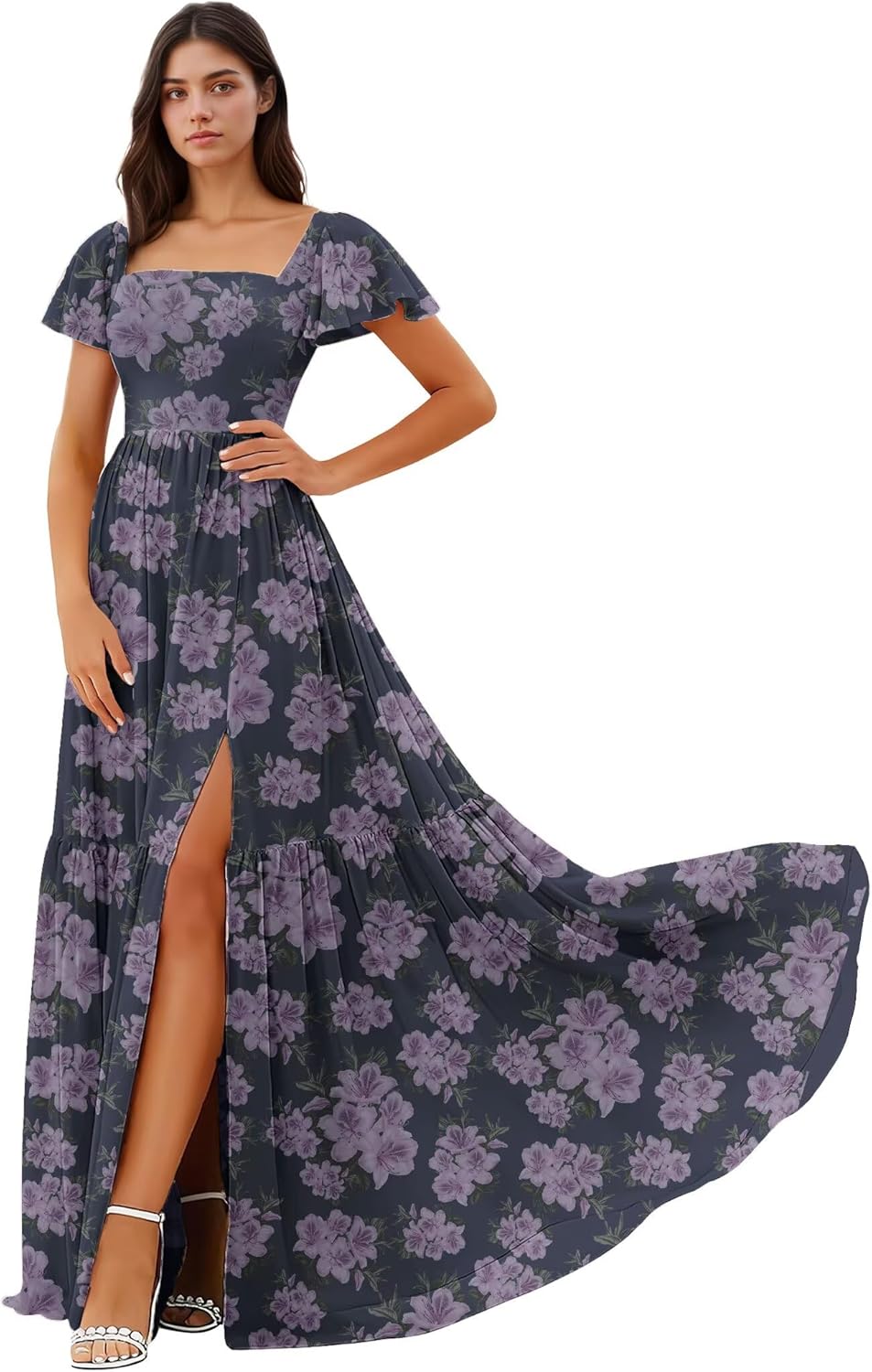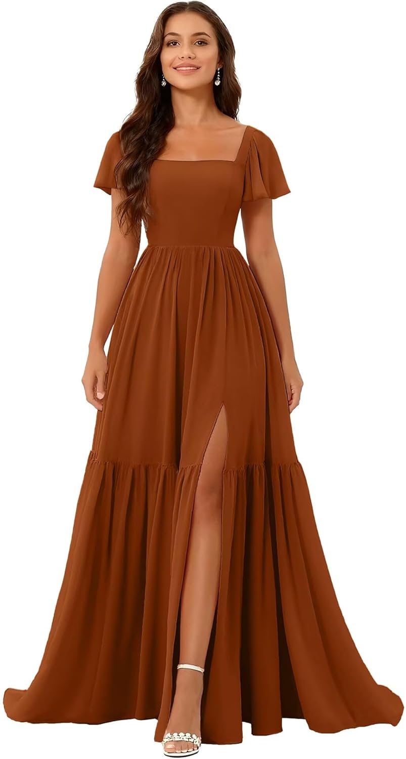 | Embellishment Feature | Ruch, Short Sleeve, Square Neckline, Thigh Slit |