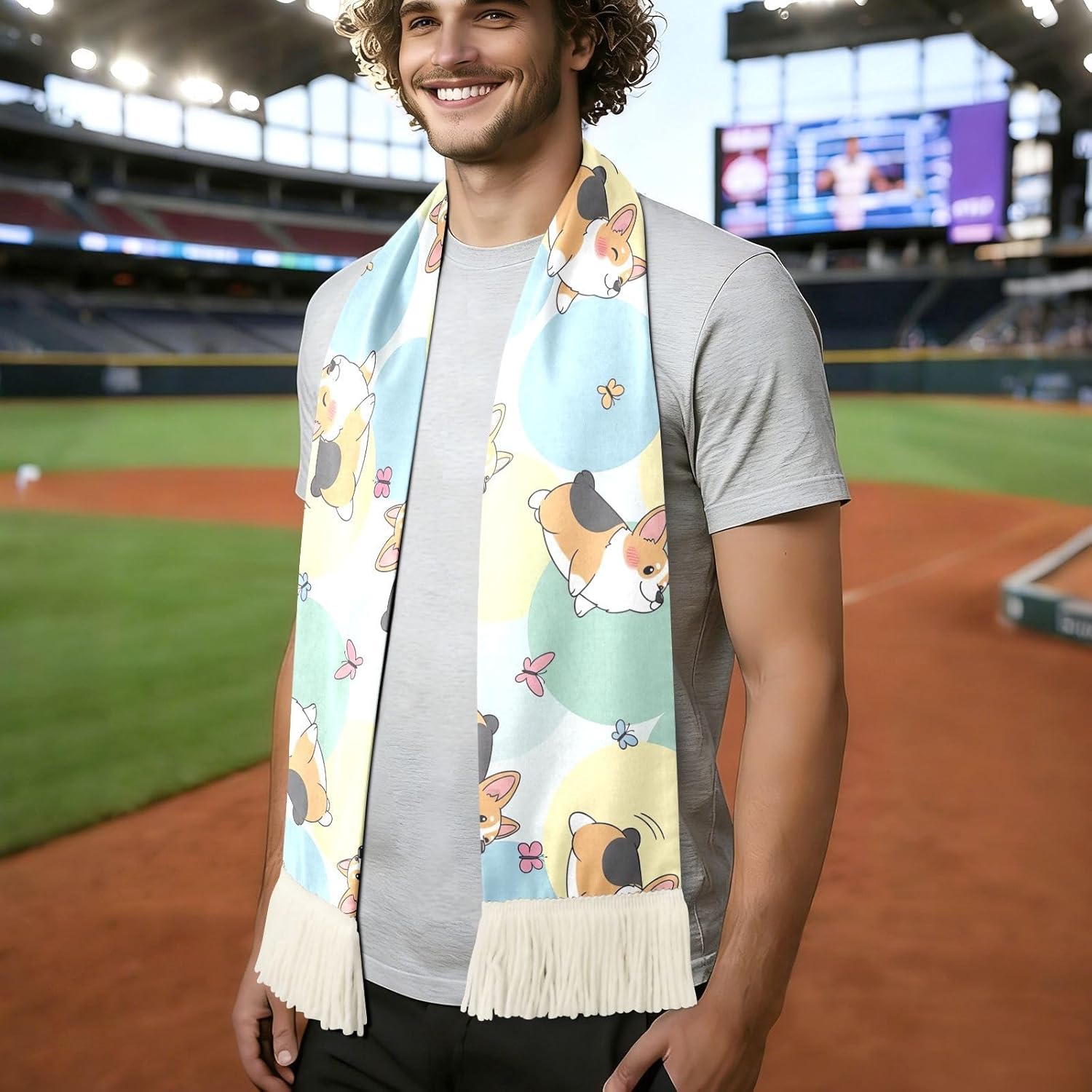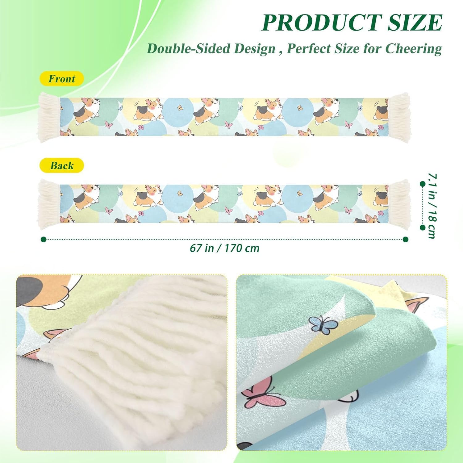 Whether you are cheering from the stands or gathering with fellow fans outside the stadium, this sports fan scarf is your go-to accessory for every game day. Crafted from 100% polyester quick-dry fabric with a soft brushed texture, it feels gentle on the skin while absorbing sweat efficiently and drying fast.The scarf measures a generous 70 x 7 inches with a print area of 60 x 7 inches, giving you plenty of space to display slogans, graphics, or rally messages. Decorative fringe ends on both sides add a classic fan scarf look that stands out in the crowd.The vivid printed design stays bright and sharp even after repeated washing, so your colors never fade in the excitement. in white and black base options to pair with a wide range of graphic designs and team colors.Looking for a thoughtful gift for a soccer fan? This soccer scarf makes a present for birthdays, holidays, or game day celebrations. It is also ideal for group events, fan clubs, and outdoor activities where friends and family come together to cheer.Care is simple: machine wash gently in water below 40 degrees C, no bleach, no dry cleaning. A reliable companion for every fan moment.