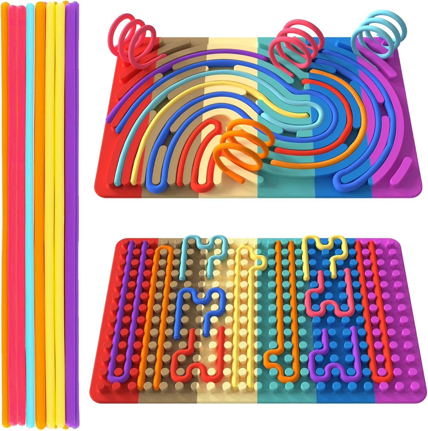 Sensory Activity Board,Silent Fidget Toys for Calming Duble Sided Design Kids Busy Board for Fine Motor Skill,Silicone Calm Down Fidget Toy for Travel Calming, Stress, Anxiety,ADHD & AutismFeatures:High Quality: Our Sensory Activity Boards are crafted from high-quality, burr-free materials, ensuring they are safe for children. Designed for easy assembly and disassembly, these therapy toys help alleviate stressScreen Free Quietness: Tired of noisy screens? Our Sensory Activity Board offers a peaceful, quiet, and screen-free alternative for kids to stay focused in public places like airplanes, cars, waiting rooms, or restaurantsStress Relief for Kids and Adults: Adults facing anxiety and stress find solace in adult fidget toys tailored to their needs. These discreet yet effective tools offer quiet sensory stimulation, allowing individuals to unwind and refocus amidst the demands of daily lifeImportant Functions: Its unique design can help kids stimulate imagination and increase concentration. And it also can enhance dexterity, fine-motor skills and hand-eye coordination through touch sensory experience, featuring push, peel, loop, and bridge actions, making it a perfect easter basket stuffer fostering child developmentIdeal Gifts: This sensory activity board thoughtfully designed and tested, it offers a therapeutic and satisfying activity suitable for all ages. An ideal gift choice
