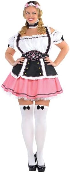 Our sassy beer girl costume includes a peasant style dress, flower headband, choker, apron and thigh highs.