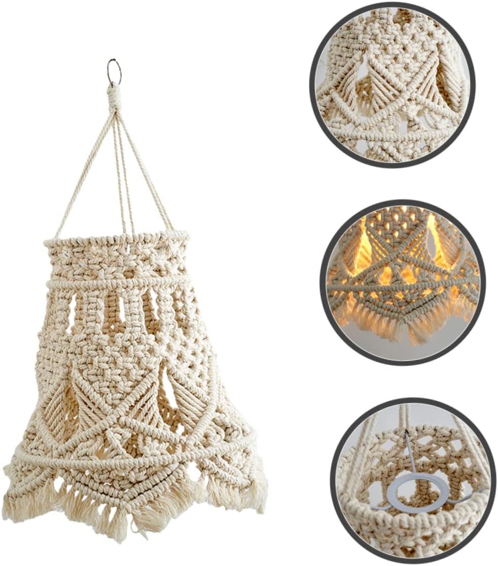 Package Include 1 x lampshade Features -Material:Cotton rope, iron ceiling light lampshade -Size:25.00X25.00X30.00cm/9.82X9.82X11.79in cotton lamp shade -Color:Beige lampshades for chandelier lamp - This lampshade can soften bright light to prevent irritate your eyes, being very practical and decorative lamp accessories. - Fine workmanship, and sturdy, not easy to wear or tear, you deserve to have one lamp decoration. - Widely used in decorating many different places like living room, bedroom, restaurant, cafe, farmhouse, and etc lampshade. - It is completely hand woven, the entire lampshade is finely woven with artificial tight weave trim, ensuring that the edge of the hanging art cotton rope weave won't sag and affect the look ceiling lamp cover. - style, weaving structure design, light weight and compact size, easy to use hotel lampshades.Goods Descriptionlampshades for chandelier lamp Do you want a kind of professional light cover for your chandelier? Do you want to bring more style and elegance to your home? This can be your choice.hanging lamp shade Really practical and useful, just install it wherever you like
