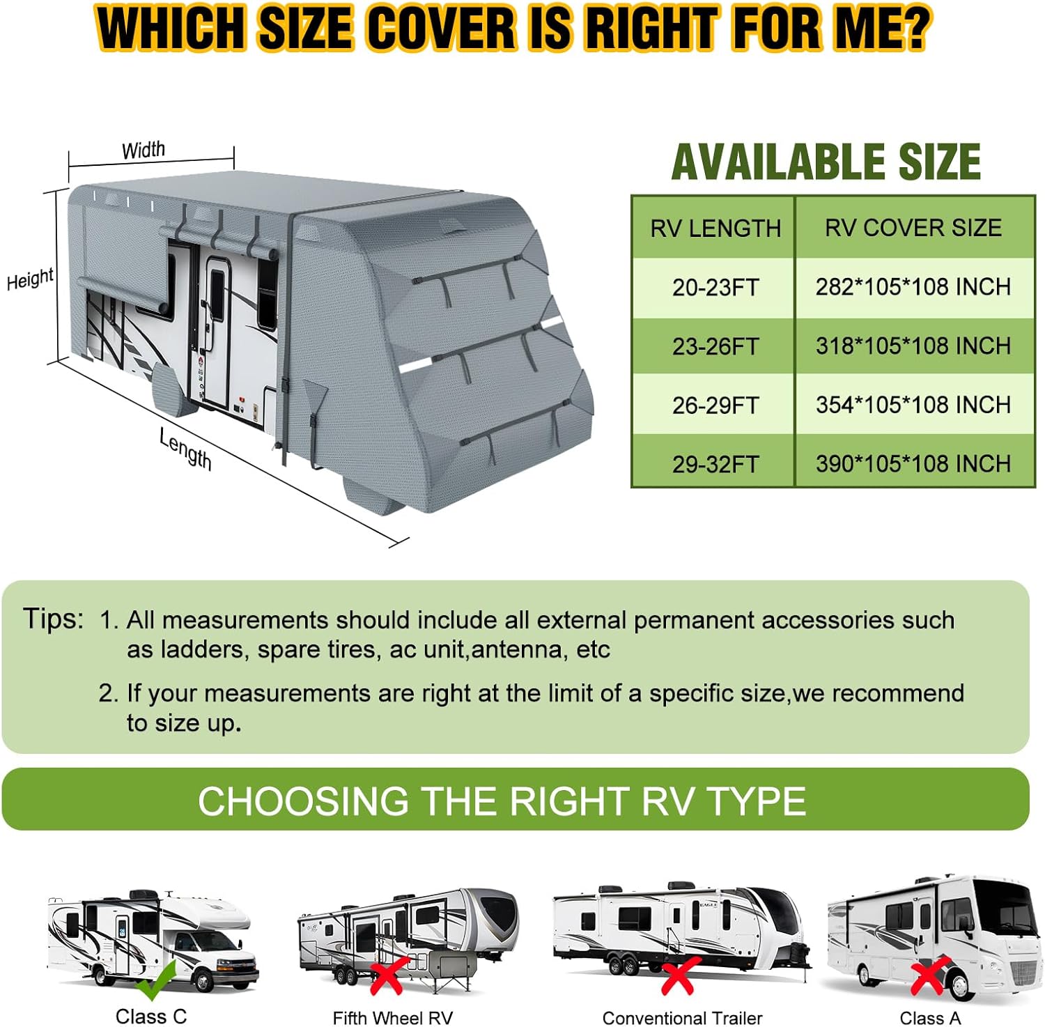 | Coverage | Full exterior coverage for Class C RVs (20-23 ft) |