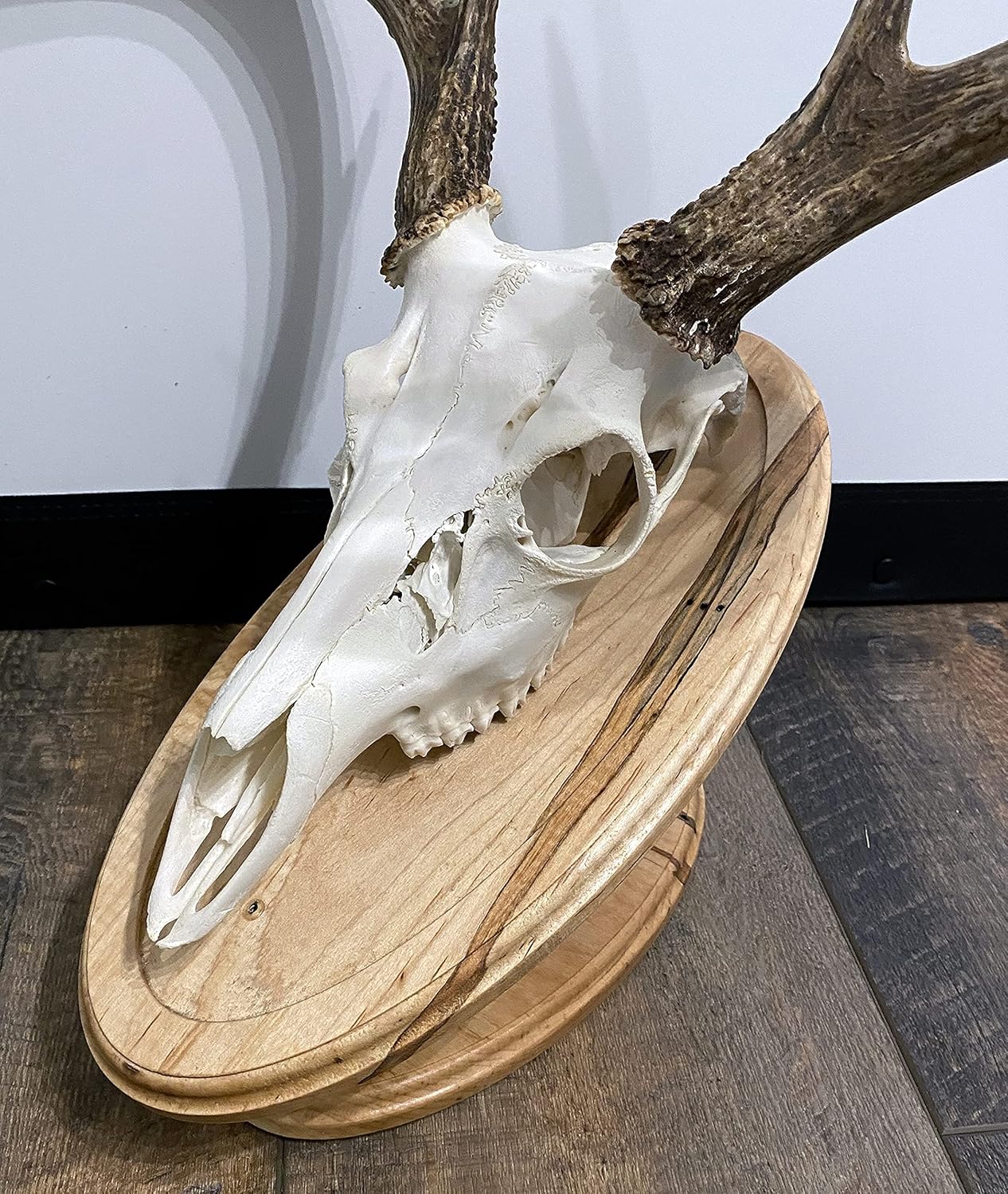 Available in a variety of finishes and sizes, these European skull displays are classically styled using a simple oval, with a recess, for a refined look suitable for display throughout the home. While I have listed a variety of wood choices, these can be made from and wood type you like, just ask. Skull attaches easily to plaque using the pre-attached rod that simply slips into the skull for easy skull installation and removal! Most of these plaques are finished with a protective polyurethane finish, with the exception of the barnwood display. Barnwood/Roughcut, by nature, varies in color and texture. Photos shown are representative. I generally try to use circle-kerf oak materials to provide a textured look and color correct with stain for better uniformity. Large size is suitable for whitetail, pronghorn, and most mule deer with the oval measuring approximately 14.75" by 7.5" outside with a 12.625 " by 5.5" recess. NOTE: This listing is through Amazon Handmade. I am a solo small-business owner, and each item is made by me, by hand, on a made-to-order basis in the U.S.A. I have listed a production time with each listing, that impacts the ship-by date. While I try to ship earlier, please understand that during peak seasons, and due to the nature of each item being put into que when ordered, the last day is my worst-case scenario. If these dates will not work for you, please reach out to me prior to ordering. Additionally, every item is made from genuine hardwoods and reclaimed materials, so some variability, especially in barnwood material, should be expected. My items are NOT mass-produced, and by nature, real wood has variability in grain, coloration, etc. Images shown are good representation, because as mentioned, I am not making materials from veneer or artificial materials. If you receive an item and there are ANY issues, please reach out to me directly through the number/email provided with each order. Things happen, but I always make them right!