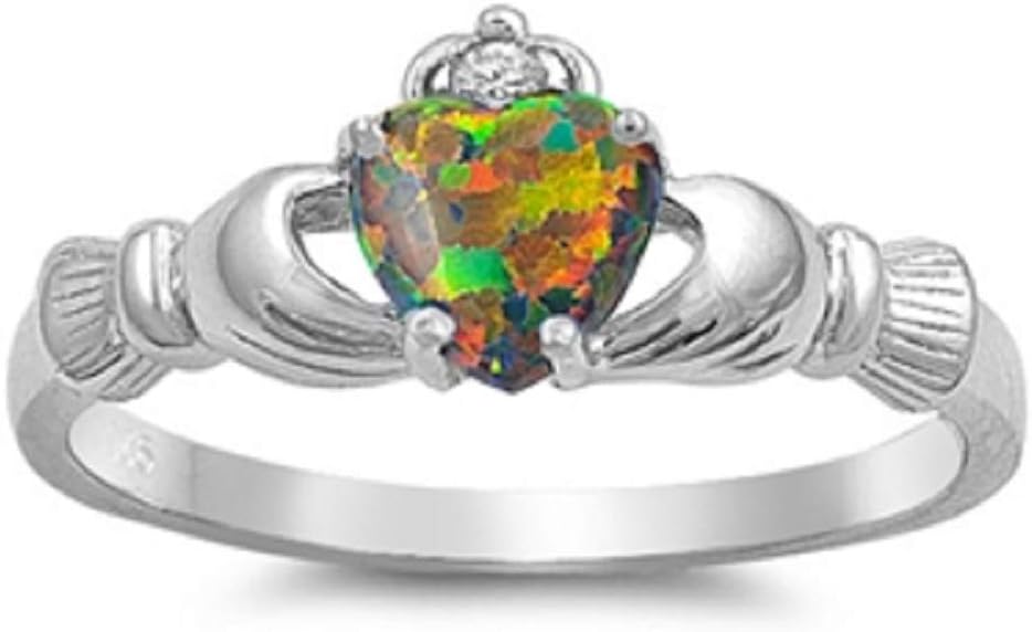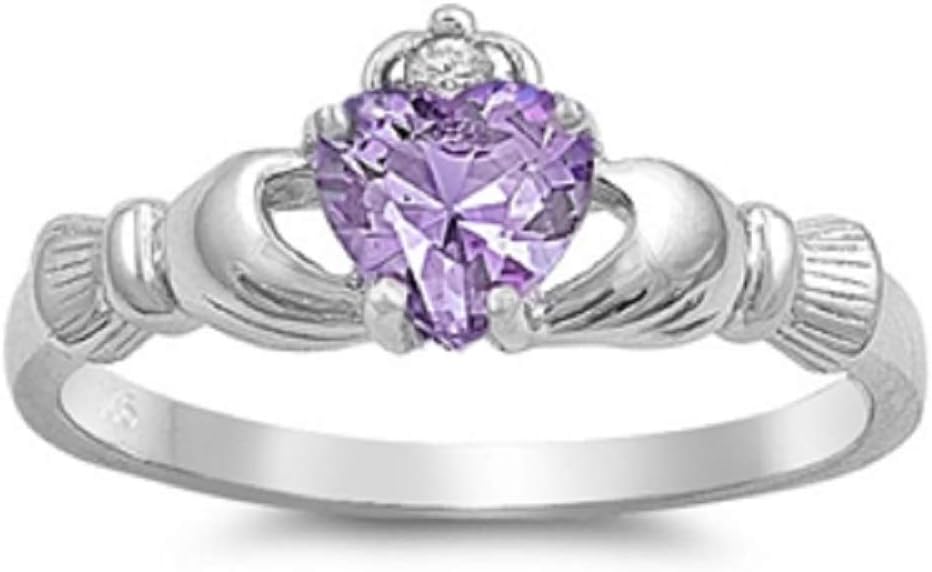 Simulated Emerald Cubic Zirconia Claddagh Benediction Ring Sterling Silver 925 (Sizes 3-15). Our silver jewelry is made from Sterling Silver. Sterling Silver is a mixture of high-quality 92.5% or higher pure silver with alloys to add strength and ability to withstand time and wear. All our items have a 925 Stamp referring to the Silver Purity that was used when crafted. Please Note: The 925 Stamp location may vary, depends on the item.