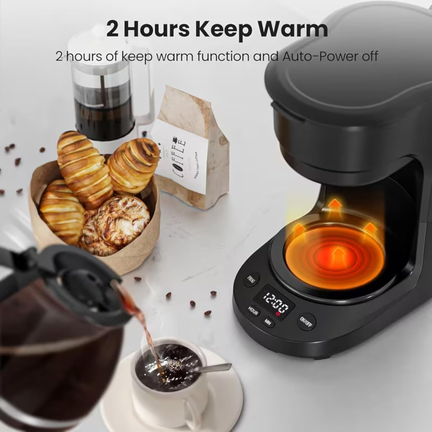 • KEEP WARM FUNCTION: Features a 2-hour keep warm function with auto-power off to maintain coffee temperature and ensure safety after brewing is complete