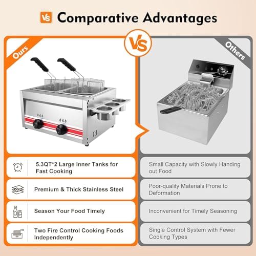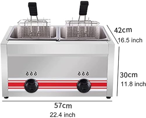 This versatile deep fryer is ideal for both commercial and home use, making it a perfect addition to any kitchen, whether you're operating a bustling restaurant or cooking for your family. It excels at frying a wide range of foods, including crispy chips, golden onion rings, savory croquettes, tender chicken nuggets, and succulent shrimp. Additionally, it serves as a reliable option for boiling various dishes, enhancing its utility in your culinary endeavors. Key Features: - **Durable Design**: Crafted from thickened stainless steel, this fryer is not only wear-resistant but also features a smooth, shiny surface that resists scratches and rust, ensuring long-lasting performance. - **Customizable Cooking**: With an independent switch and power knob, you can easily adjust the firepower and temperature, tailoring the cooking process to meet the specific needs of different ingredients. - **Efficient Ventilation**: Designed with fire sight holes and heat dissipation openings, this fryer enhances airflow while allowing you to monitor the cooking process for optimal results. - **Stability and Safety**: The increased height and rubber foot pads provide enhanced stability, preventing any slipping during use, making it a safe choice for busy kitchens. Specifications: - Product Name: Deep Fryer - Material: Stainless Steel - Heating Gas: Liquefied Gas - Machine Size: 57*42*30 cm / 22.5*16.5*11.8 in - Net Weight: 10 kg / 22 lb - Inner Pot Capacity: 10L + 10L - Heating Method: Gas - Valve: Low Pressure Valve (medium and high pressure valves are prohibited) Packing List: - 1 Deep Fryer - 2 Frying Baskets - 2 Tank Lids - All necessary accessories included. Elevate your cooking experience with this efficient deep fryer, designed to meet the demands of any kitchen while delivering delicious, perfectly cooked meals every time.