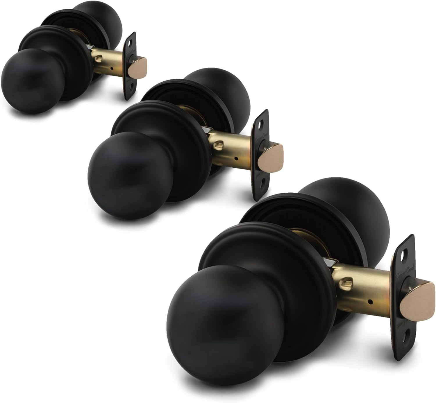 Get keyed privacy and performance where it matters. This exterior and interior entrance door knob is ideal for entrance doors, bathrooms, and any space that benefits from keyed locking. It delivers reliable function, long-term durability, and a polished finish that fits any décor. Perfect for DIY installation, it includes an adjustable latch and mounting hardware to fit standard doors. The all-metal design ensures years of smooth turning and dependable performance, while the polished finish offers clean, modern appeal that resists smudges and tarnish. Whether you're replacing old hardware or outfitting a new space, this privacy knob installs easily, fits universally, and provides value without compromise. KEY BENEFITS ENTRANCE FUNCTION FOR INTERIOR AND EXTERIOR DOORS Keyed locking mechanism—ideal for entrance and bathrooms. EASY DIY INSTALLATION Installs in minutes using only a screwdriver. Includes everything you need: latch, screws, and step-by-step instructions. SLEEK, MODERN FINISH Matte Black steel complements both modern and traditional interiors while resisting smudges and corrosion. STURDY BUILD FOR DAILY USE Reinforced metal construction offers lasting durability and a firm, smooth turn you can feel. VALUE-PACKED HARDWARE High-quality construction with a 30-day return window—so you can install with confidence and flexibility. HOW TO INSTALL: Remove old hardware using a screwdriver Align new latch and knob to pre-drilled door holes Secure with included screws Test knob and lock function before full use Fits door thicknesses from 1-3/8" to 1-3/4". Backset adjustable to 2-3/8" or 2-3/4". MAIN DETAILS: Function: Entrance – Keyed Lock Finish: Matte Black Material: All-metal chassis with brass and steel components Backset: Adjustable to 2-3/8" or 2-3/4" Door Thickness Fit: 1-3/8" to 1-3/4" Handing: Reversible – works on both left- and right-handed doors Included: Knob, latch, mounting screws, installation instructions Security: ANSI Grade-3 Certified Return Policy: Voluntary 30-Day Return Guarantee