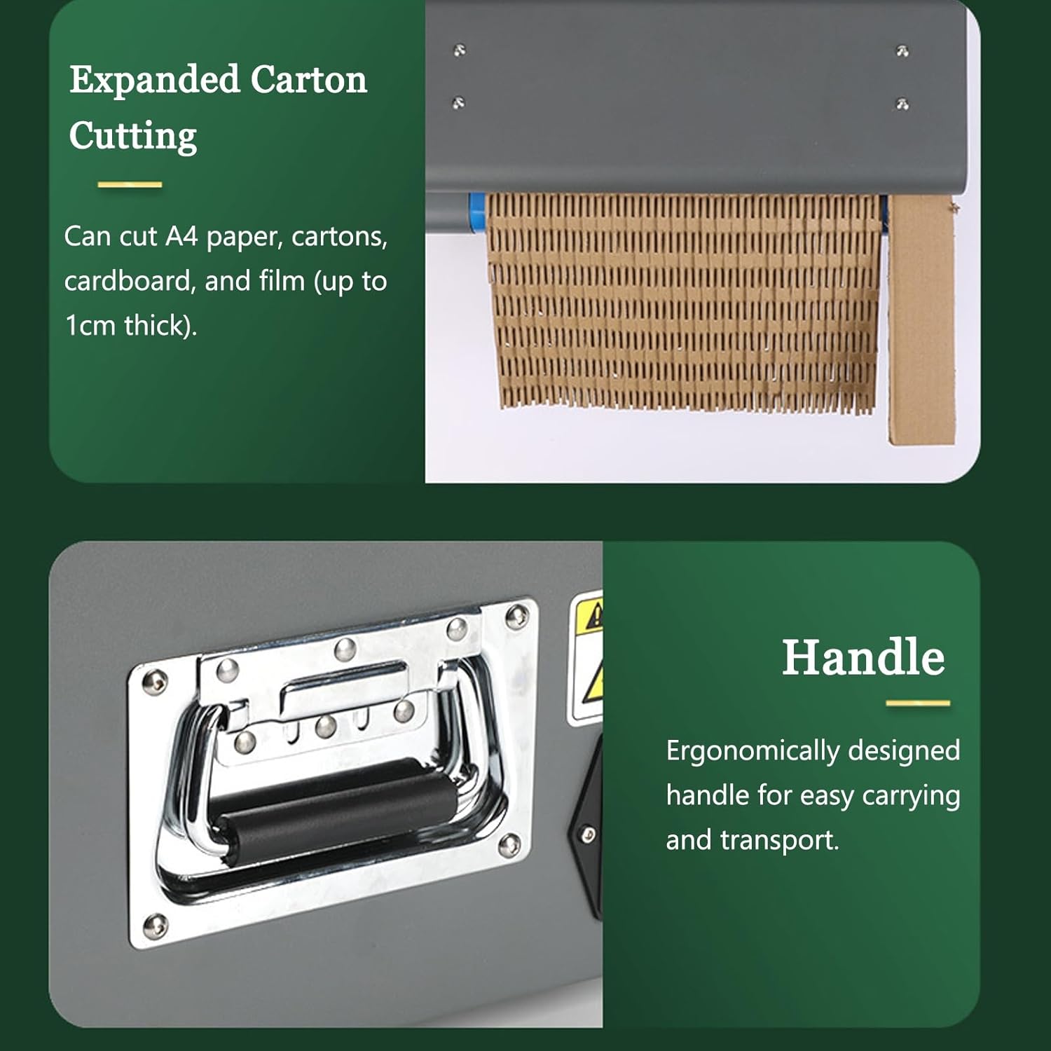 Corrugated box expansion cutting machine according to different packaging needs, we designed a rocker speed controller. When using, you only need to stretch it to achieve a good buffering effect. No additional cutting tools or tapes are required to complete the packaging, which improves the packaging efficiency.◆Product parameters:1. Product name: Corrugated Box Expansion Cutting Machine2. Voltage: 110V/220V3. Power: 200W4. Cutting width: 325mm5. Cutting thickness: 6mm6. Maximum speed: 3 meters/minute7. Noise: 80 decibels8. Applicable waste paper: 3-5 layers of paper (about 20-40 sheets of A4 paper/70g paper)9. Product size: 450X300X270 mm10. Weight: 28KG◆Packing list:1 X Corrugated box expansion cutting machine◆Notes:1. Manual measurement may have an error of 2-3 cm.2. The color may vary slightly due to different screen displays.If you have any questions or suggestions, please contact us immediately, we will reply you as soon as possible and provide you with quality solutions.
