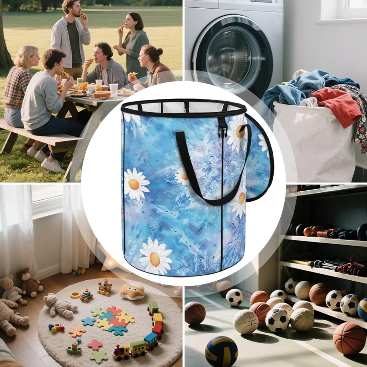 Versatile Multi-Purpose Use – Works as a trash bin (compatible with disposable bags thanks to built-in clips), laundry hamper, toy storage, or organizer for pet supplies, tools, and more. Easy to clean and maintain