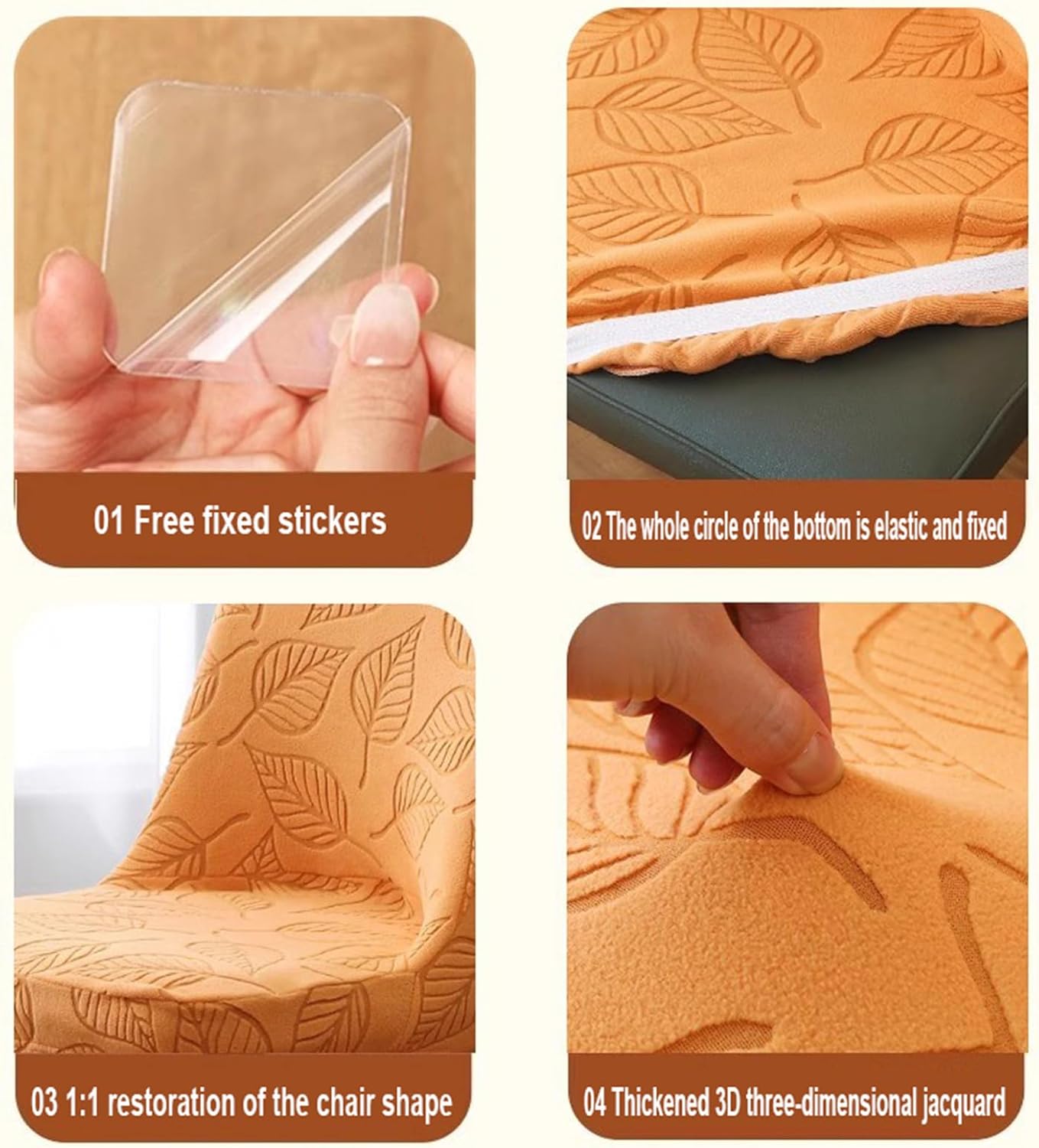 dining chair cover Each package includes 2/4/6 shell chair covers. These covers for dining chairs can not only protect your furniture, but also decorate your home and add color to your home. You can choose according to your favorite and decoration needs.1. With this extra soft fabric as the material,soft, comfortable and flexible.2. stretch chair cover protect or update your kitchen dining room chair appear brand new, Detachable and washable, durable.3. All-around elastic provide a clean, sleek look that goes on easily and stays in place. Suitable for all seasons.Product name: arc chair seat cover/chair coversStyle: modern and simpleFabric: knitted jacquard velvetCrafts: reactive printing and dyeingColor: Green, dark gray, light gray, white, blue, orangeSize rangeBack height: 42-55cm/16.5-21.6 inchSeat depth: 37-49cm/14.5-19.2 inchSeat width: 39-47cm/15.3-18.5 inchSingle weight: about 245gSuitable for: all seasonsIncludes:2/4/6 × Chair CoverNote:1. Please carefully read the Size we provided in the pictures, and measure your chair size to determine if it will work.2. Due to the light difference, the gaming chair covers stretchable's color may be slightly different from the pictures.3. Please allow 1-2cm differences due to manual measurement.4. Because slipcover is elastic, do not iron. If ironed, will lose some elsticity.