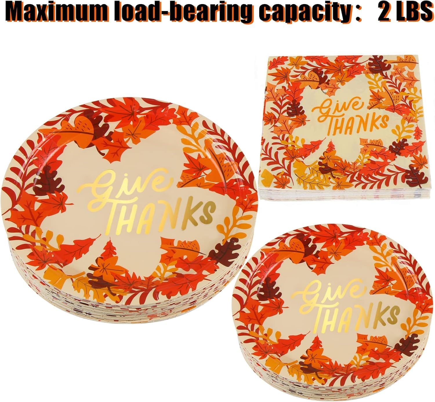 DIYASY 200 Pack Thanksgiving Paper Plates and Napkins, Fall Disposable Plates Dinnerware Heavy Duty Dessert Dinner Plate for 50 Guests Party Supplies