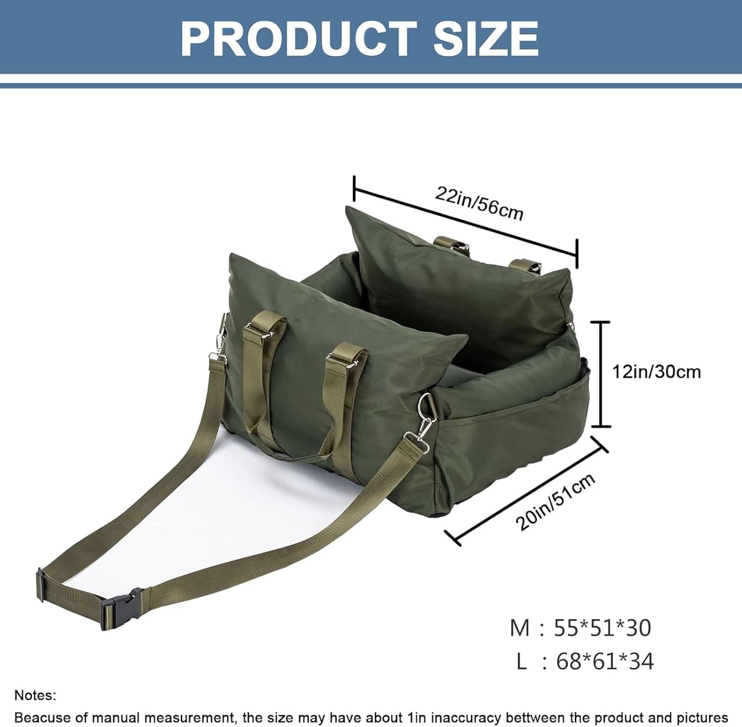 Product DescriptionThe adjustable portable handles hang securely from both the front and rear seats of your car, providing stability and preventing your dog from feeling anxious or scared during the ride. The length-tested harness attaches to your pet's collar, ensuring they stay securely in place and preventing them from jumping out. The non-slip bottom of the car seat prevents it from slipping and sliding, giving you peace of mind while driving and keeping your pet safe.Not only is this car seat a portable dog car seat and carrier, but it can also be used as a comfortable dog bed. Place it on your sofa without any worries, as your dog can enjoy a cozy nap without damaging your furniture. Additionally, the car seat prevents excessive pet hair and odors from sticking to your sofa, keeping your home fresh and clean. The adjustable buckle on the dog seat doubles as a hand strap, making it easy to take your pet outdoors when you're not driving.Packing list:1* Pet car cushion (excluding other items used for display in the pictures)Product detailsProduct Dimensions : 21 x 21 x 16 inches; 7.7 Pounds