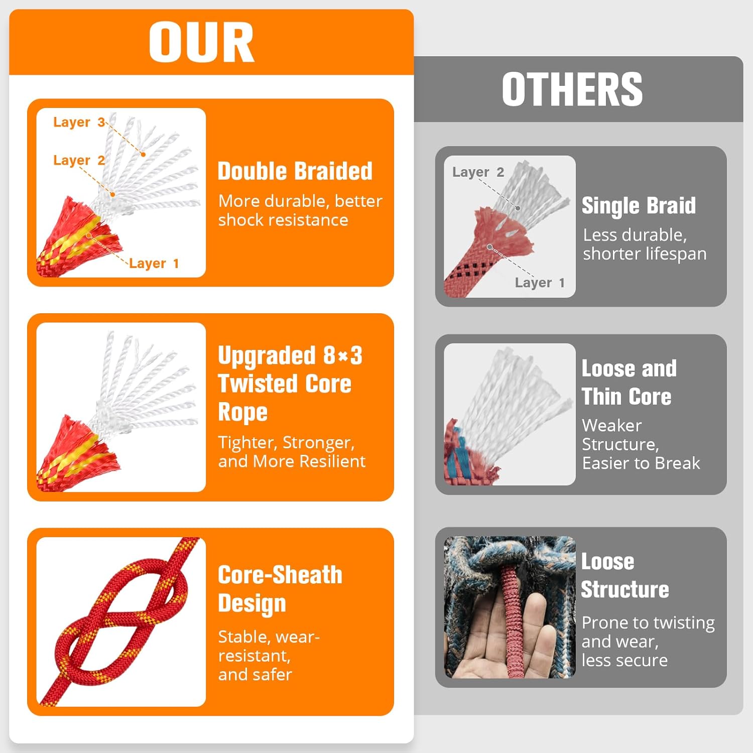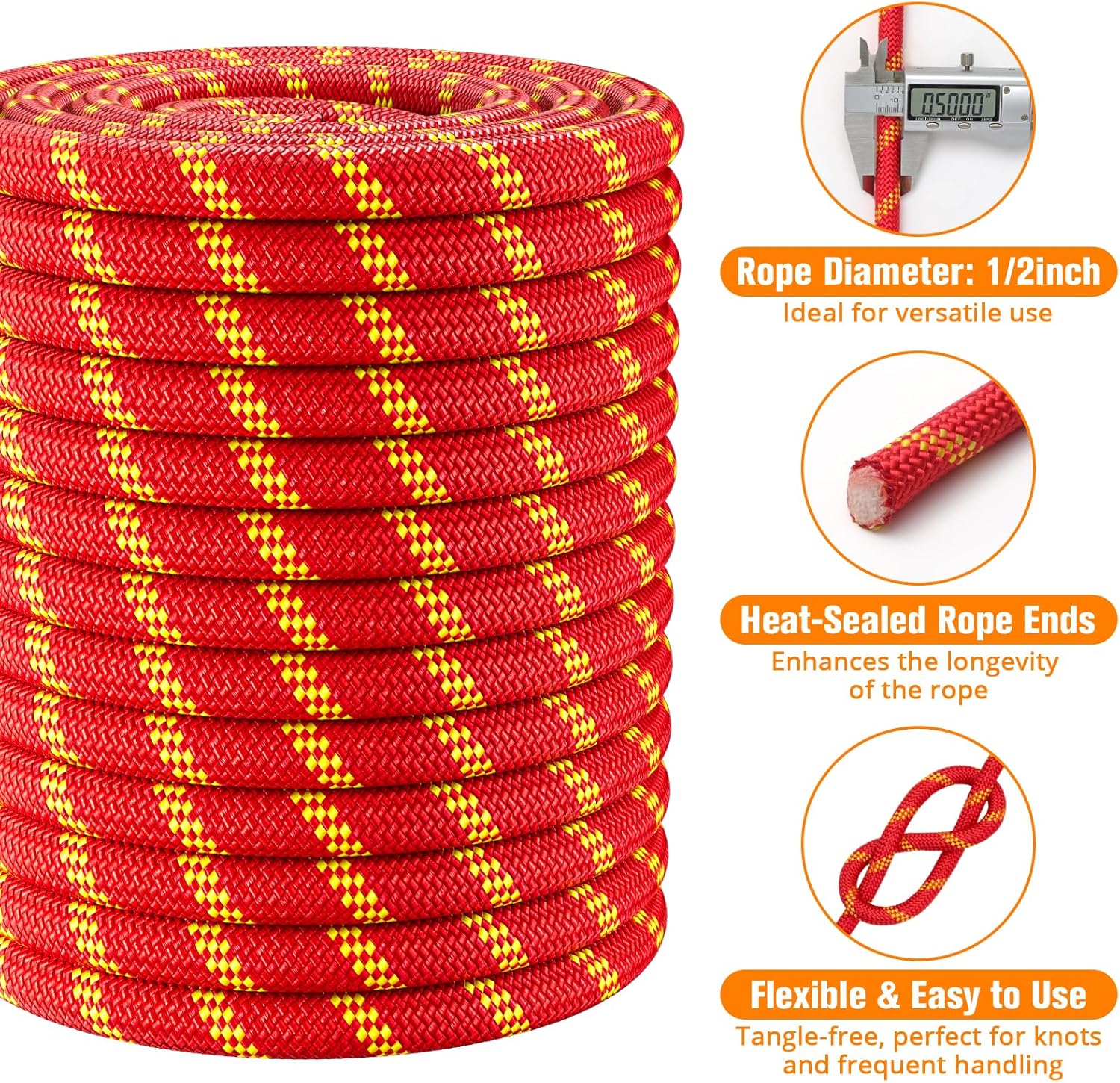 High-Strength Double-Braided Polyester Rope Built for professionals and outdoor enthusiasts alike, this high-strength double-braided polyester rope delivers exceptional performance in the most demanding environments. With outstanding tensile strength, abrasion resistance, and weather durability, it's ideal for tree work, marine use, towing, and more. Product Features: Reinforced 48-Strand Double-Braided Construction – Features a tight, dual-layer weave with 48 high-strength polyester strands in each layer. Combines superior flexibility with enhanced abrasion resistance for long-lasting performance. Impressive Breaking Strength – With a 3/8-inch diameter and a rated breaking strength of 3,500 lbs , this rope is strong yet lightweight—perfect for general rigging and medium-duty tasks. All-Weather Durability – Made from premium polyester, it resists UV rays, moisture, chemicals, and extreme weather conditions, maintaining flexibility and reliability over time. Professional Heat-Sealed Ends – Precision heat-fused rope ends prevent fraying and unraveling, ensuring clean, safe, and hassle-free handling every time. Versatile Outdoor Use – From arborist rigging, sailing, and rescue to swings, HVAC installations, and camping, this rope is designed to perform across a wide range of professional and recreational applications. Available in Three Strength-Rated Diameters: 3/8" (3500LBS) – Ideal for light-duty pruning 1/2" (5200LBS) – Perfect for general-purpose rigging 3/4" (8200LBS) – Heavy-duty strength for large limb removal