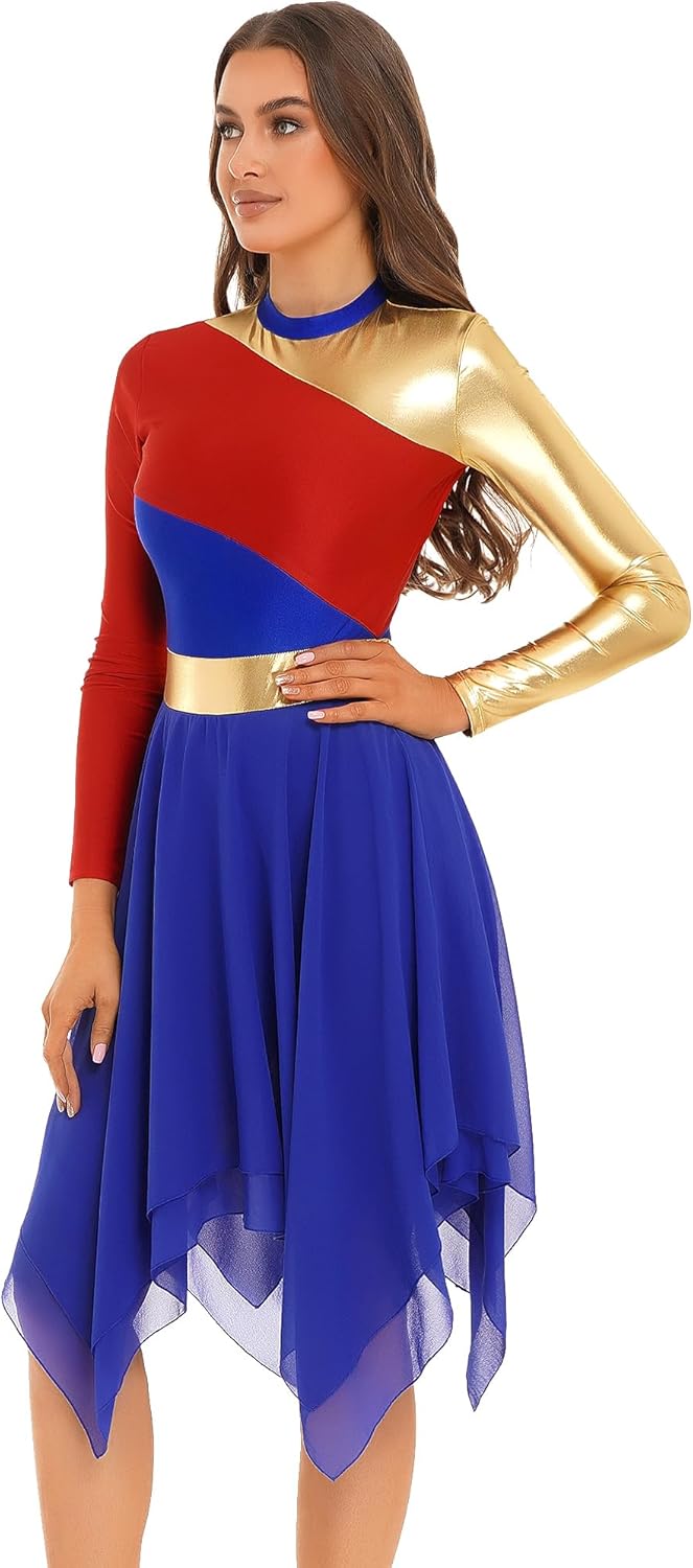 Set Include: 1x Dance Dress Condition: New without tag Material: 50% Polyester, 50% Chiffon Tag No.---|---Recommended Size---|-----Length-----|------Chest-----|------------Waist-----------|---Sleeve Length ---S------|-----------S----------|----28"/71cm----|---29.5"/76cm---|-----25"-34.5"/63.5-88cm----|-----22.5"/58cm- ---M------|-----------M----------|---29"/73.5cm---|---31.5"/81cm---|-----27"-36.5"/68.5-93cm----|------23"/59cm-- ---L------|-----------L----------|----30"/76cm----|---33.5"/86cm---|----28.5"-38.5"/73.5-98cm---|-----23.5"/60cm- ---XL-----|----------XL----------|---31"/78.5cm---|---35.5"/91cm---|---30.5"-40.5"/78.5-103cm---|-----24"/61.5cm- --XXL-----|----------XXL---------|----32"/81cm----|---37.5"/96cm---|---32.5"-42.5"/83.5-108cm---|----24.5"/62.5cm