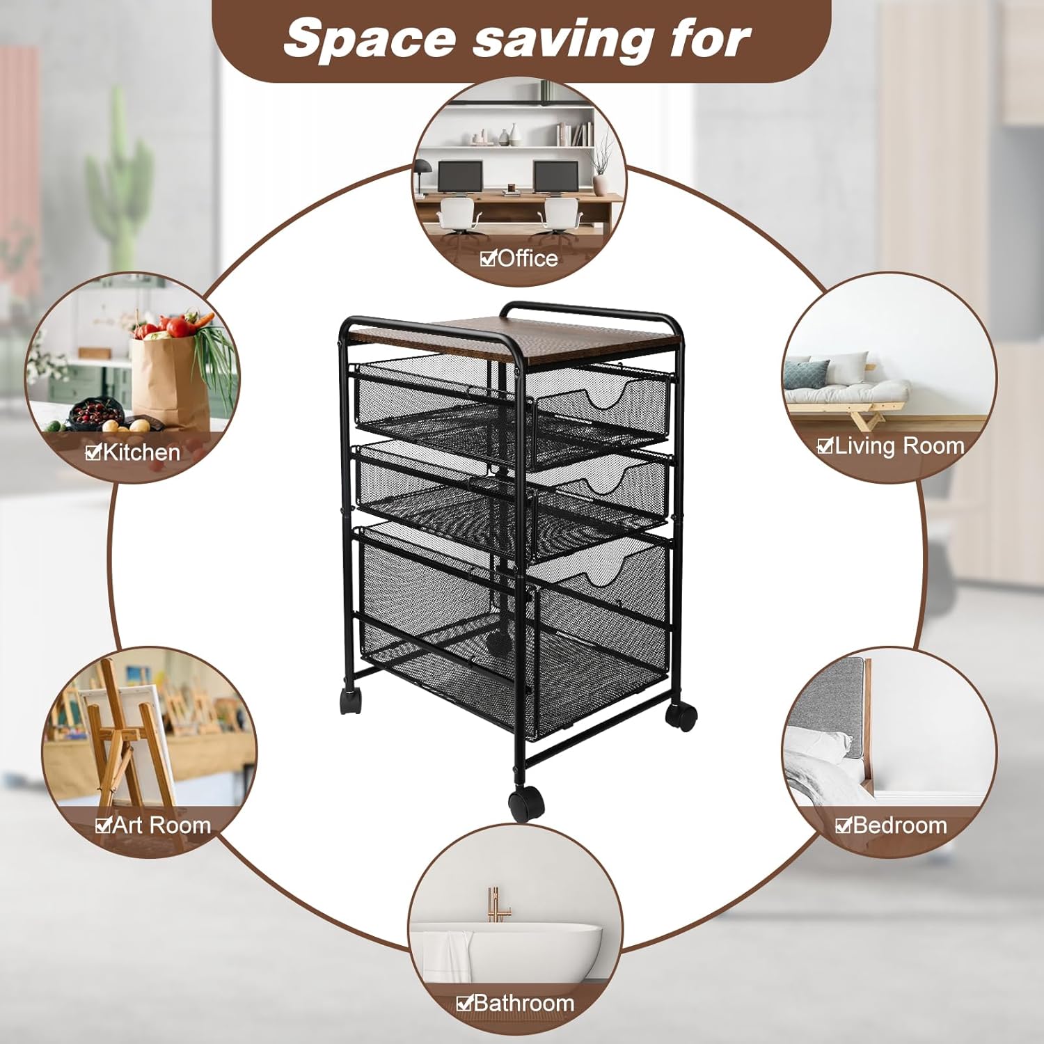 This File Cart with drawers can hold lots of stuff but only take little space, ideal for placing beside desk or corner. The big drawer can perfectly accommodate letter size hanging File Folders.
