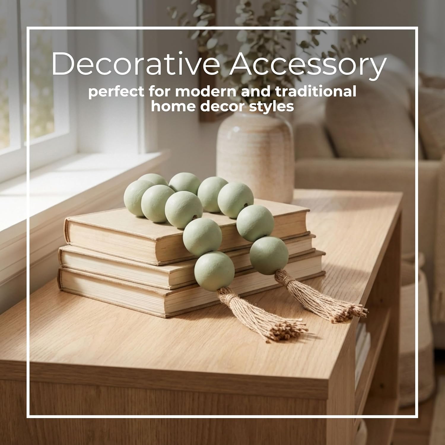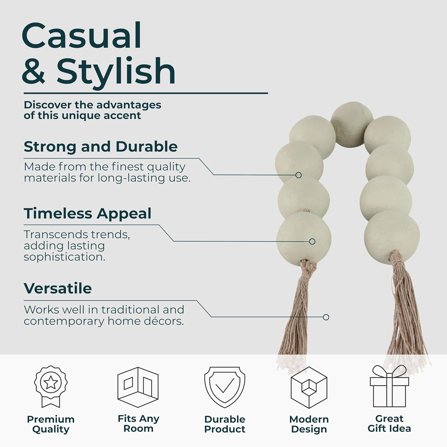 This Sagebrook Home ecomix bead garland brings a simple, sculptural touch to everyday styling, reading like a soft strand of decorative orbs you can move from room to room as your space evolves. The rounded bead shapes echo a decorative sphere or orb, while the tassel ends add just enough texture to finish a vignette without crowding it or feeling fussy. At 44" long, it drapes easily across a coffee table tray, over stacked books, or along a console, giving you a flexible decorative accent that works in compact apartments as well as open, airy living rooms. The sage green finish and warm brown tassels pair well with pottery, wood, and metal, so you can mix it into existing decor instead of starting over. Use it as tabletop decor to soften hard edges, loop it around a vase for a curated, designer-styled look, or layer it with statues and other sculptural pieces for a more collected feel. The ecomix material keeps the piece lightweight yet substantial in hand, making it simple to adjust when you refresh your shelf decor, coffee table display, or entryway console. Whether your style leans modern, rustic, coastal, or somewhere in between, this garland acts as a quiet connector that ties together color, texture, and form throughout your home, adding a finished touch that still feels relaxed and approachable.