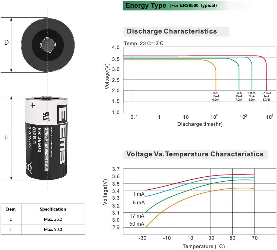 | Battery Cell Type | Lithium-Thionyl Chloride (Li-SOCL2) |