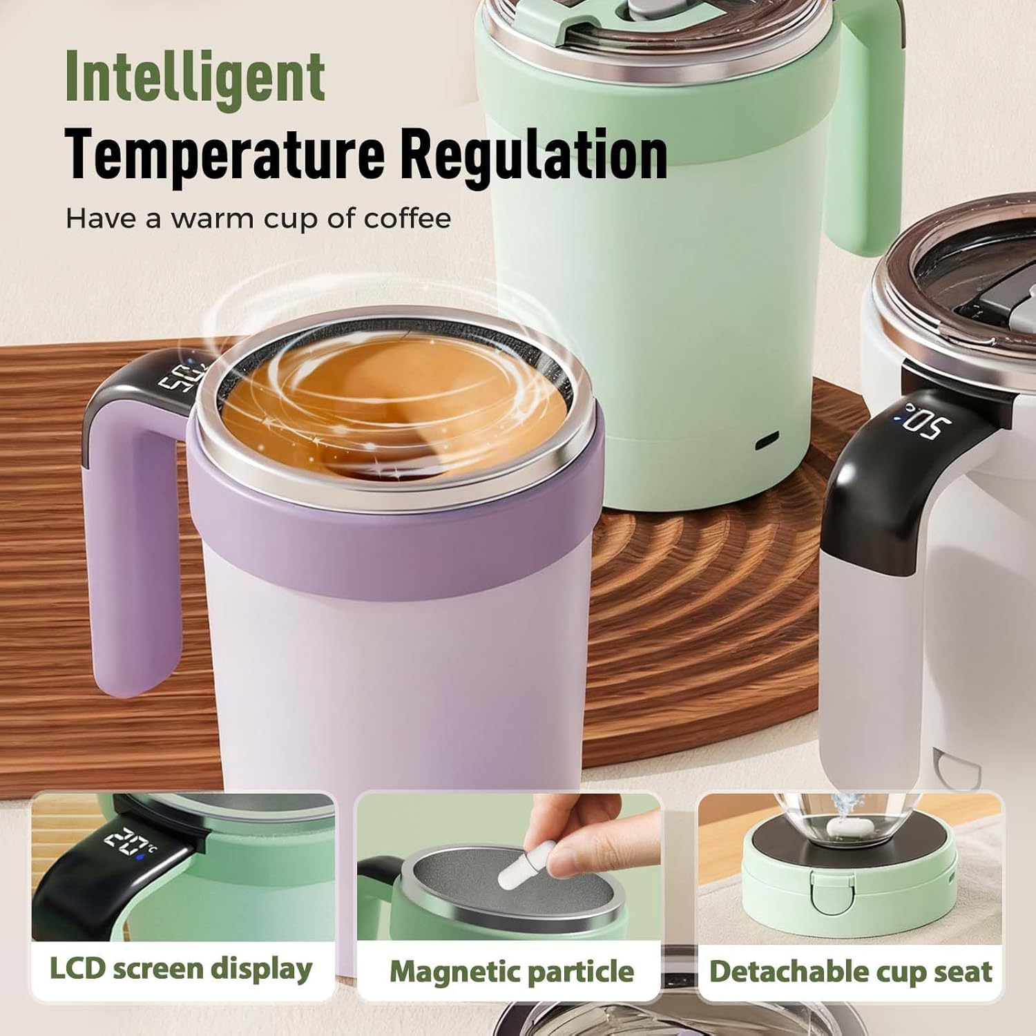 Introducing the ultimate solution for coffee lovers on the go – our premium self stirring coffee mug, designed to elevate your coffee experience whether at home, in the office, or while traveling. This versatile travel coffee mug combines cutting-edge technology with practical design to bring you the best in convenience and functionality. Crafted from durable ABS and stainless steel materials, this electric coffee mug offers long-lasting performance and easy cleaning. The automatic magnetic stirring feature ensures your coffee or other beverages are perfectly blended every time, eliminating the need for spoons or stirrers. Simply press a button, and the automatic stirring coffee mug activates a powerful magnetic mechanism that gently swirls your drink to perfection. The built-in temperature display provides precise heat control, turning this coffee mug warmer into an indispensable accessory for keeping your coffee at the ideal temperature. Whether you prefer your coffee piping hot or just warm enough, the coffee mug warmer feature allows you to enjoy your beverage exactly how you like it. No more rushed coffee breaks or cold drinks – this coffee travel mug keeps your cup cozy and ready whenever you are. Designed with travel in mind, this coffee tumbler fits seamlessly into cup holders and is lightweight enough for daily commuting. Its rechargeable USB functionality ensures you can power the electric coffee mug anytime, anywhere, making it a must-have for those who enjoy their coffee on the road. The combination of self stirring convenience and temperature control makes this automatic magnetic stirring coffee mug perfect for busy mornings, office desks, or road trips. This coffee mug’s innovative stirring and warming capabilities redefine what a travel coffee mug can be. Enjoy the perfect cup of coffee, tea, or any hot or cold liquid with the simplicity of an automatic stirring coffee mug that does the work for you. Experience enhanced flavor, consistent temperature, and ultimate convenience with our self stirring coffee tumbler. Upgrade your coffee routine with this multifunctional, easy-to-clean, and modern coffee cup designed for coffee enthusiasts who value quality, efficiency, and portability. Whether you're purchasing for yourself or as a gift, this electric coffee mug and warmer is a standout choice for anyone looking to enjoy their favorite beverages with less hassle and more enjoyment. This self stirring, automatic, magnetic coffee mug is truly the future of coffee drinking.