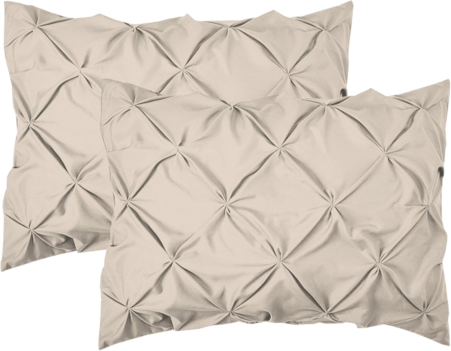 Elegant Comfort 2-Pack Sham Set, Pinch Pleat Design. Plush and Stylish - 1500 Premium Hotel Quality Microfiber with a cozy feel and smooth weave. Wallow in the decadence that these sham covers have to offer. Featuring stain resisting material and an overall long-lasting nature. Perfect for hot sleepers with a cool and crisp feel for a more soothing sleep. Available in several stunning colors, making them perfect for any style. Pair it with our bed-in-a-bag Pinch Pleat Design Comforter Set. Crafted from incredible wrinkle-free microfiber yarns. Easy care, fade and stain resistant, and the perfect fit. Features easy slip-on to keep your pillows in place. Available in various colors for king, and standard/queen pillows. Care Instructions: Do not bleach. Machine wash cold with like colors on a gentle cycle. Tumble dry low to avoid damaging your sheets.