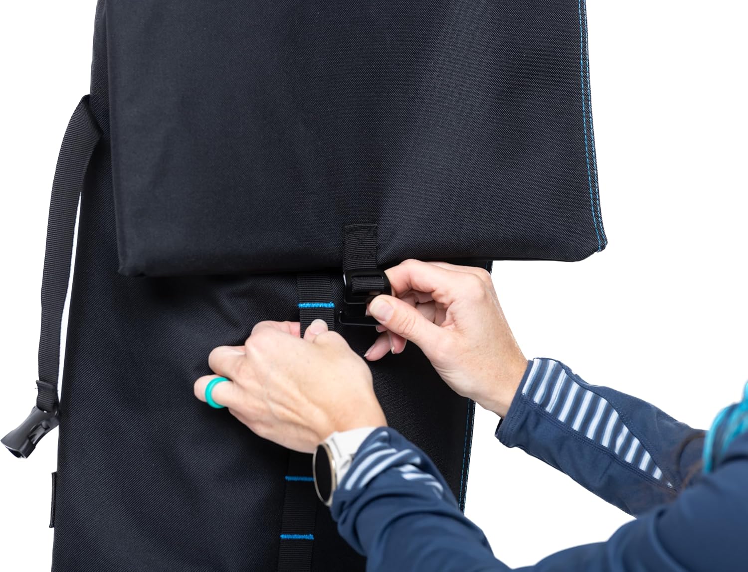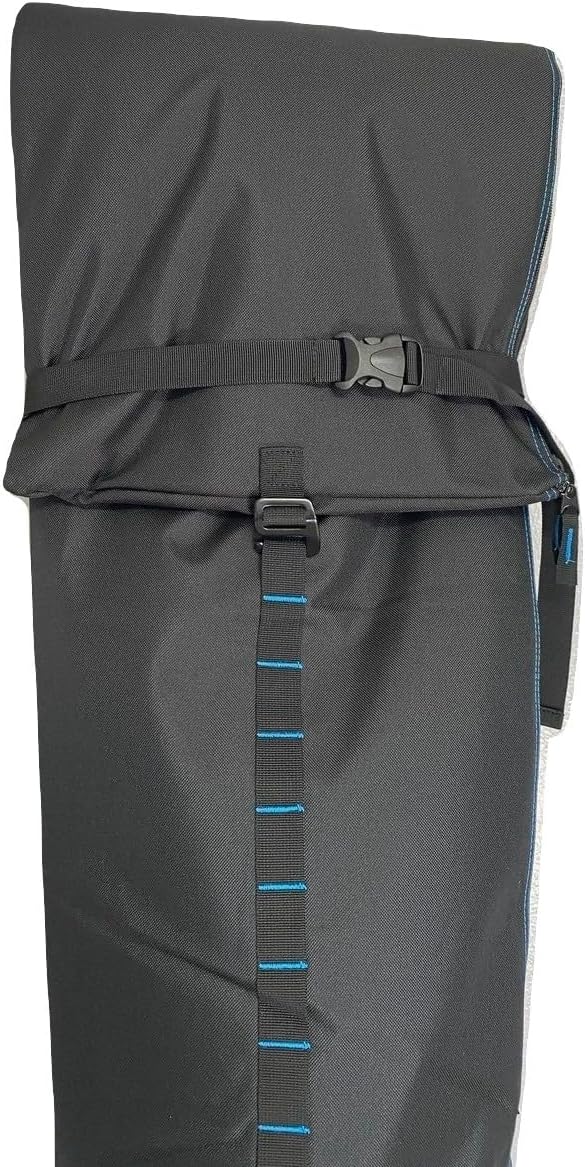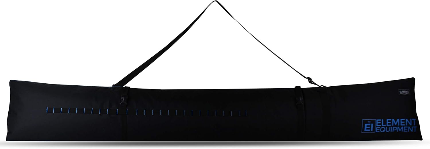 Designed for skiers who want reliable protection and a secure fit, this adjustable ski bag provides a simple, durable way to transport and store skis and poles. The bag expands to fit one pair of skis up to 190cm, along with a pair of poles. The adjustable length design creates a more secure fit so skis aren’t shifting during transport. Whether driving to the mountain or traveling by air, the bag keeps your skis protected and contained in one place. Constructed from 600D PVC-coated polyester and fully padded, the bag helps protect ski edges and bases from impacts, scratches, and travel wear. The padded design adds protection without unnecessary bulk, making it practical for travel and regular use. Reinforced construction with double stitching is built to handle repeated loading, unloading, and travel. An adjustable shoulder strap and sturdy carry handles make it easy to transport skis from car to lodge, locker room, or airport. Designed in Utah by skiers, this ski bag is built with real mountain experience in mind, focusing on fit, protection, and long-term durability. It’s a straightforward solution for protecting your skis season after season.