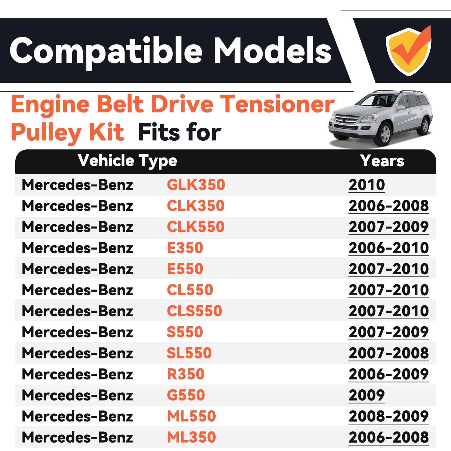 Engine Belt Drive Tensioner Pulley Kit Compatible with GMercedes-Benz ML350 C230 C300 C350 E350 S550 2006-2011 Replace# 2722021419 2722000270 2722021019 6pk2404