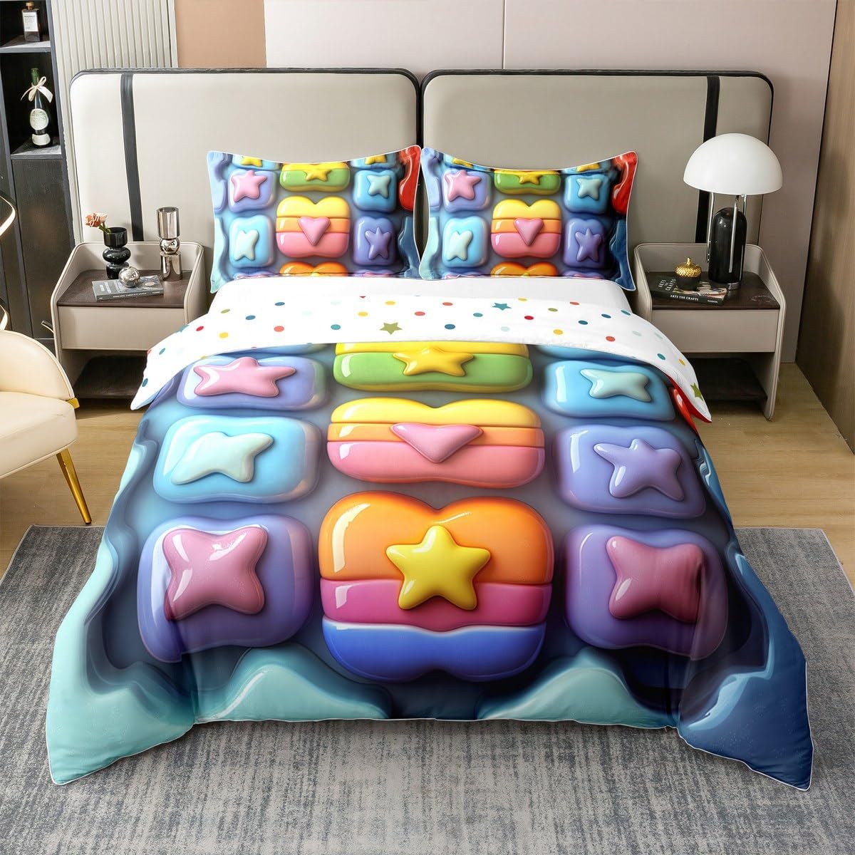 Cotton Duvet Cover Set Pattern Bedding Set, simply decorating your rooms any time you want, bringing you fresh feel for year round use Size Information Twin size:2pcs duvet cover set,1 Duvet Cover 68 x 90 inch,173 x 228cm, 1 pillow sham 20 x 30 inch,51x75cm.Without Comforter Full size:3pcs duvet cover set, 1 Duvet Cover 79 x 90 inch,200 x 229cm, 2 pillow shams 20 x 30 inch,51 x 75cm.Without Comforter Queen size:3pcs duvet cover set, 1 Duvet Cover 90 x 90 inch,229 x 229cm, 2 pillow shams 20 x 30 inch,51 x 75cm.Without Comforter King size :3pcs duvet cover set, 1 Duvet Cover 104 x 90 inch,264 x 229cm, 2 pillow shams 20 x 36 inch,51 x 92cm.Without Comforter Personalize your bedroom Beautiful design and colorful print, makes your bedroom unique and brings you a wonderful dream Washing instructions Machine wash separately in cold water,hang dry, do not bleach Occasion The cotton soft duvet cover bedding sets designed for Children ,Adult, Men, Women, Teens. This duvet cover set is also suitable for full seasons, Spring, Summer, Autumn and Winter