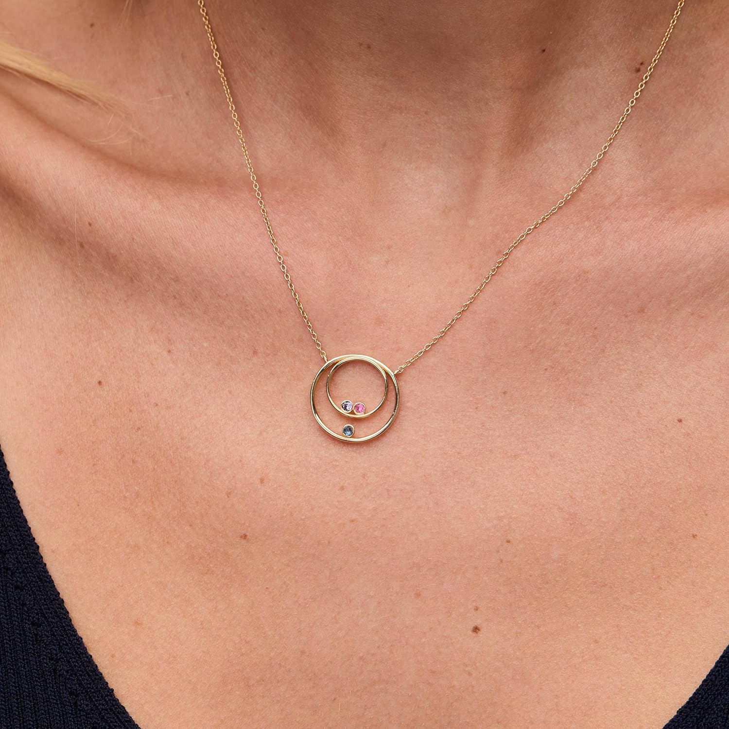 • Features: 2 round shaped cz birthstone charms, one set in each of the two integrated circles to symbolize family, love and unity. Custom birthstone jewelry is a simple keepsake gift for women to symbolize the close love of your family with each colored cz birthstone representing their birthdays.