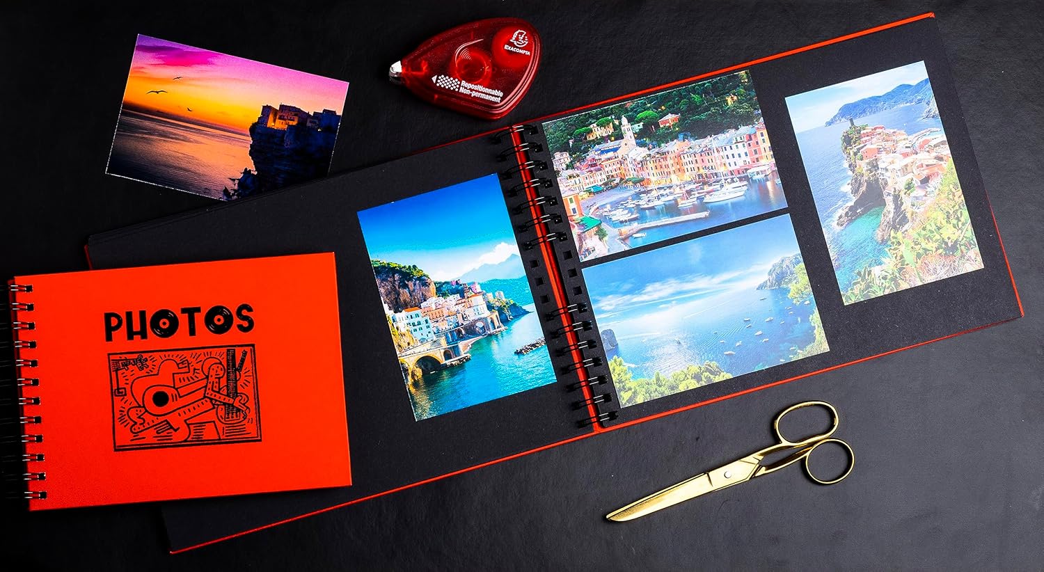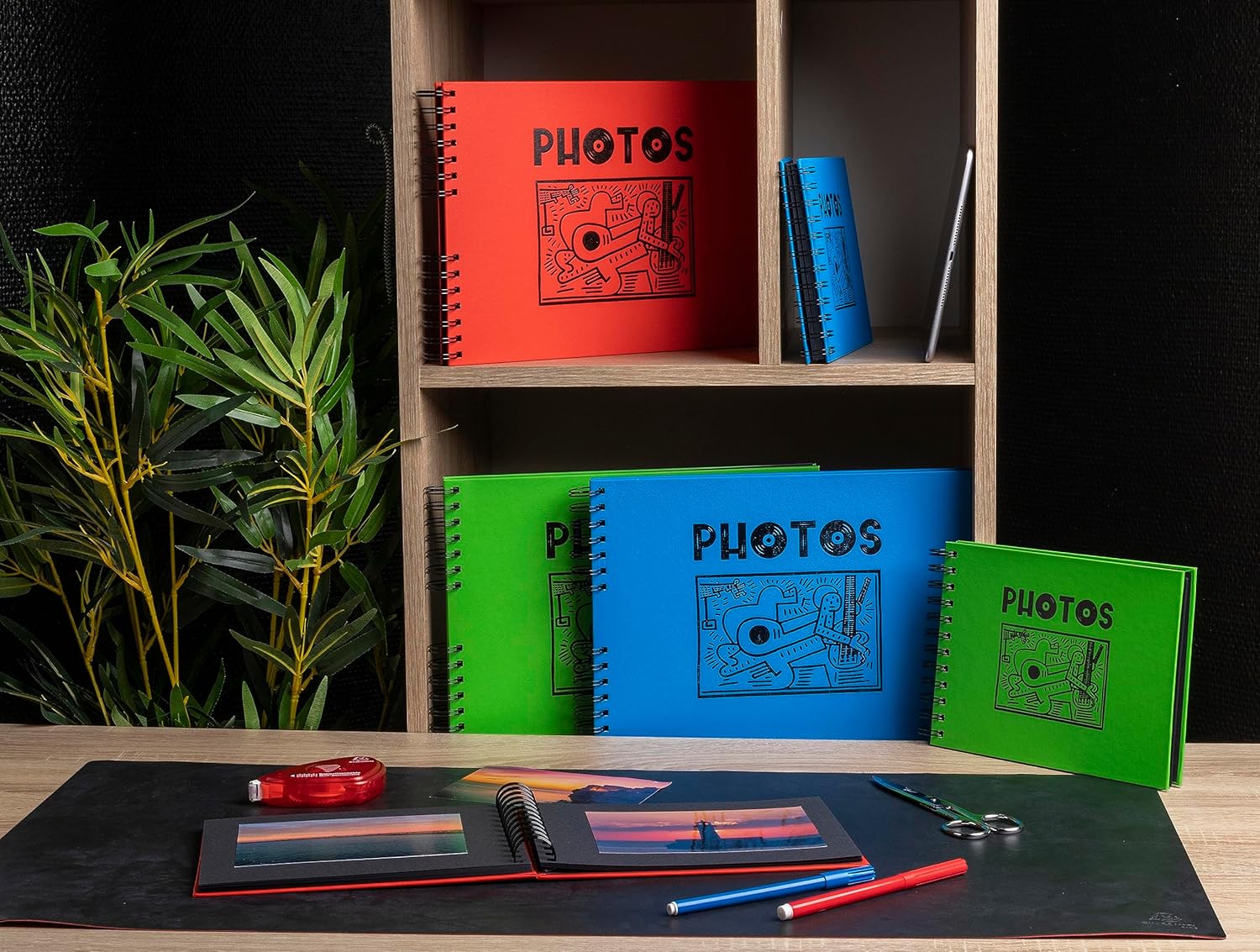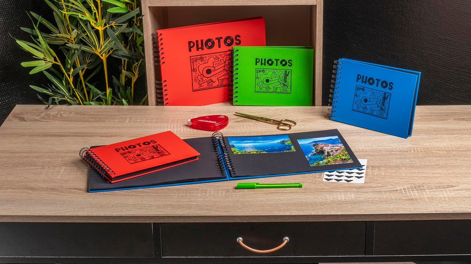 With bright colours and a black design inspired by Keith Haring's artistic universe, the Musicart range allows you to classify your photos in a decorative object. Red cover - PU effect lamination with original glossy black "PHOTOS" branding in vinyl type character. The inner pages of the album are made of a very high quality 250 g rigid black card for excellent preservation of photos. Capacity: 150 photos 10 x 15 cm, 50 black pages. Format 32 x 22 cm – Spiral Bound Album. The design of the album is created in Paris and this highly ecological product is 100% made in our factories in France